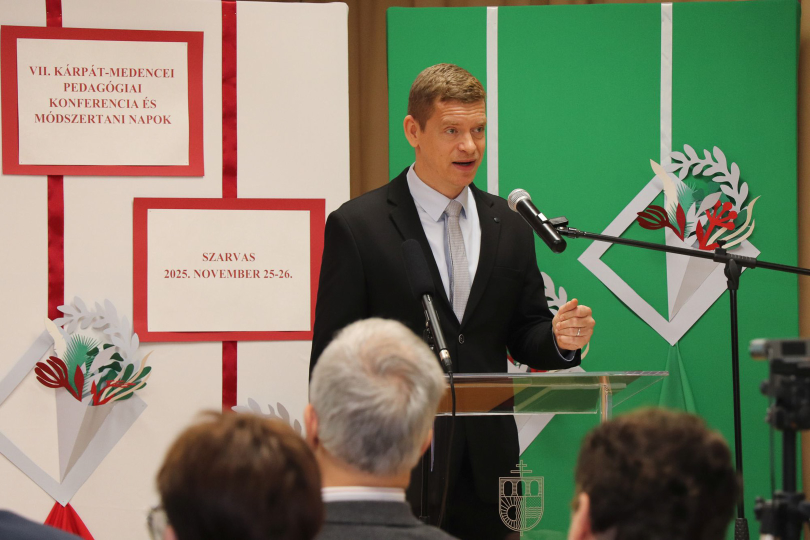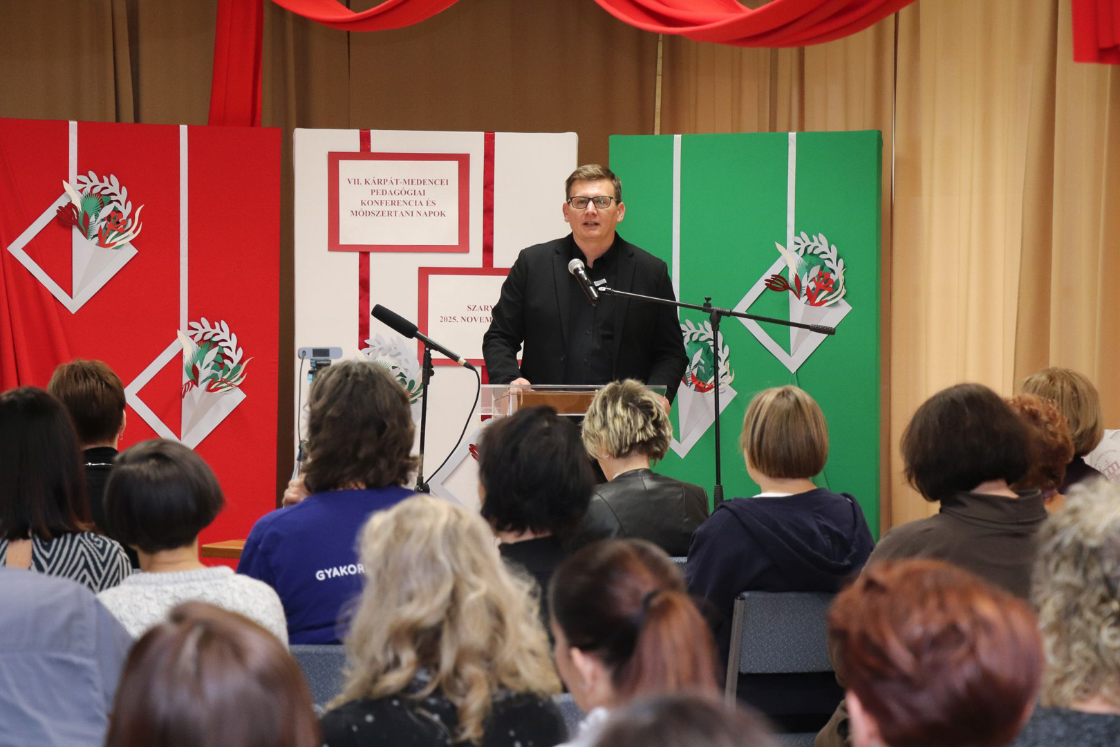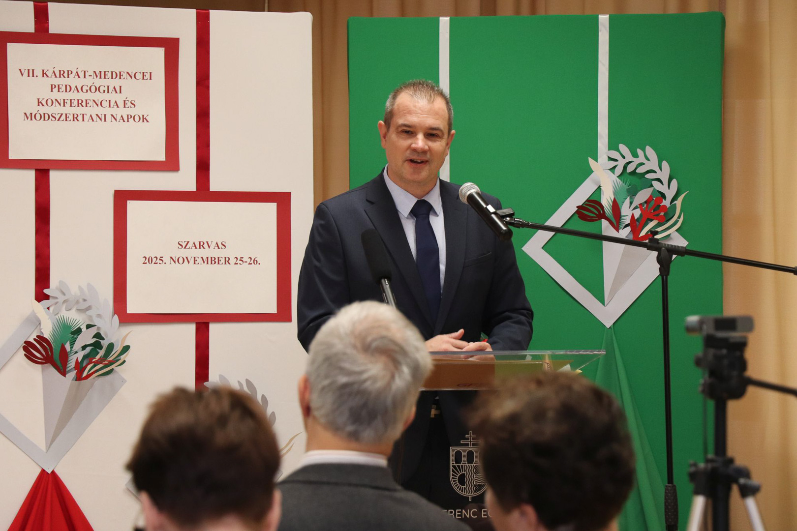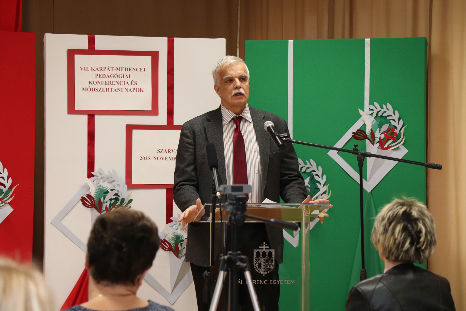 2025. november 25-26-án került megrendezésre a Gál Ferenc Egyetem Szarvasi Gyakorlóintézménye és együttműködő partnereinek, a Gál Ferenc Egyetem Pedagógiai Karának, az Oktatási Hivatal Békéscsabai Pedagógiai Oktatási Központjának, közös szervezésében, az Energiaügyi Minisztérium támogatásával, immár hetedik alkalommal a Kárpát-medencei Pedagógiai Konferencia és Módszertani Napok, külhoni, Békés vármegyei pedagógusok és egyetemi hallgatók részvételével. A hibrid módon megrendezett szakmai program két napján több, mint kétszáz fő jelenléti résztvevővel és közel kettőszázötven online bekapcsolódó érdeklődő pedagógussal és egyetemi hallgatóval került megvalósításra. A program fővédnökei voltak: Prof. Dr. Dux László egyetemi tanár, a Gál Ferenc Egyetem rektora, és Hodálik Pál, Szarvas város polgármestere, akik személyesen nyitották meg a konferenciát, és köszöntötték a Kárpát-medencei pedagógus közösségeket, hallgatóinkat. A program előestéjén Dr. Kelemen Lajos pszichológus tartott nagy sikerű tudományt népszerűsítő előadást, amely a teltházas programon az okoseszközök használatának személyiségfejlődésre gyakorolt hatását mutatta be. Bíró Gyula főigazgató, c. e. docens, a gyermeknevelési és módszertani tanszék oktatója, a két nap házigazdája és a konferencia levezető elnöke hangsúlyozta, hogy a jubileumi tudományünnep programsorozatában a Gál Ferenc Egyetem minden felsőoktatási intézménye olyan programokat, szakmai aktivitásokat szervez, amely méltó a Magyar Tudományos Akadémia „kétszáz év a tudás és társadalom szolgálatában” üzenetéhez. A Cervinus Teátrum kiváló művészeinek megnyitó műsorát követően Prof. Dr. Dux László egyetemi tanár, a Gál Ferenc Egyetem közössége nevében köszöntötte a konferencia résztvevőit, és mindenki figyelmébe ajánlotta, hogy egy másik évfordulót is megélhetünk ebben a szakmai közösségben és minőségben; Klebelsberg Kuno egykori vallás- és közoktatásügyi miniszter születésének 150 éves évfordulója, amely olyan gazdagságú „hagyaték” a polgári Magyarország megteremtésében, a művelődés minden szegmensére kihatva – az óvodától az egyetemekig meghatározza a szakmai létezésünket Kárpát-medence szerte. Olyan arcél, aki egyaránt meghatározta a köznevelés és felsőoktatás ügyét, éppúgy, mint a tudománypolitika területét. Az egyetem rektora személyes „kapcsolatát” is megemlítette, hiszen abban a laborban dolgozhat és vezethet, amelyet Klebelsberg épített és Szent-Györgyi Albert Nobel-díjas tudós laborja is volt egyben. Hodálik Pál, Szarvas város polgármestere köszöntötte a szervezőket, a résztvevőket, és hangsúlyozta a Szarvason folyó felsőoktatási intézmények szerepét a város életében, a konferencia súlyát, Kárpát-medencei kivetülését és misszióvállalását. Különösen hitelesek voltak ezek a szavak a történelmi Magyarország mértani közepének polgármestereként és gyakorló – a kihívásokat ismerő – pedagógusként egyaránt.