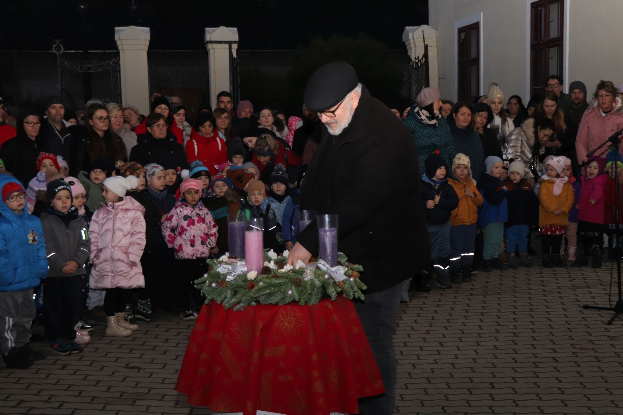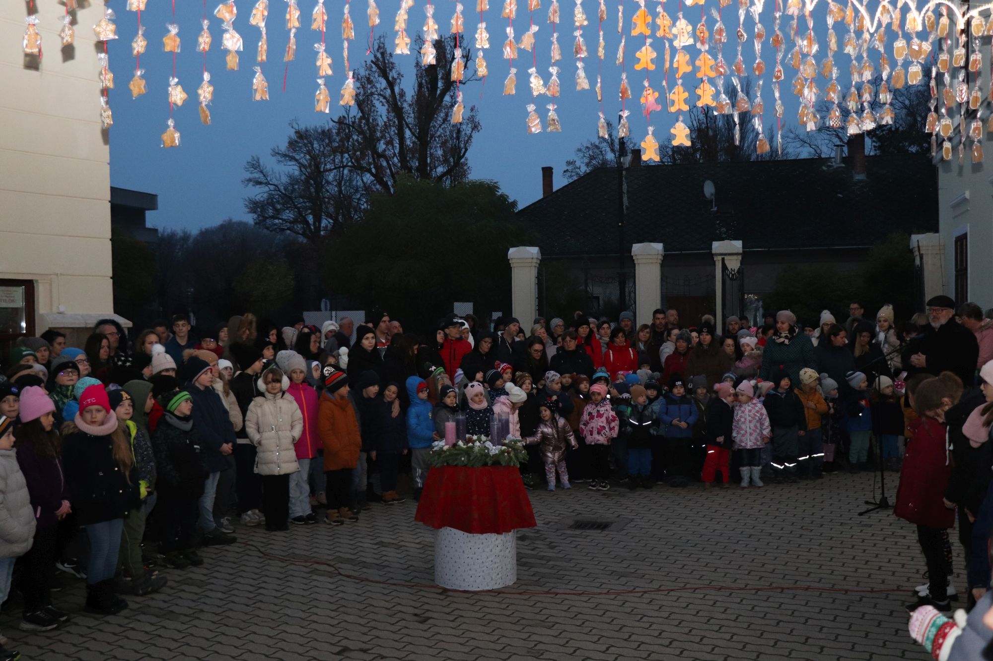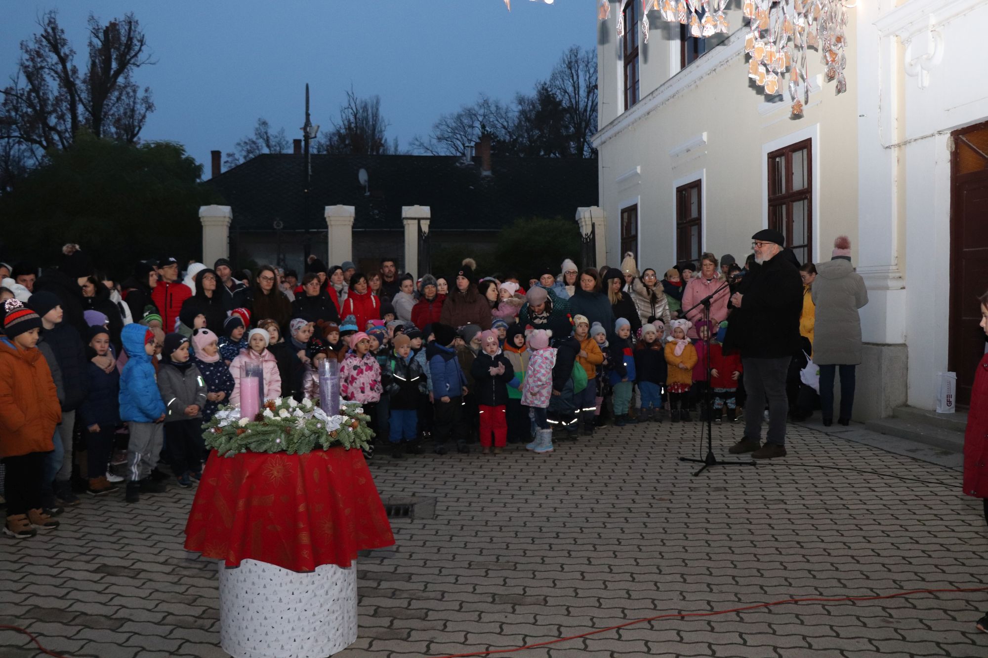 Az ünnepi időszak hivatalosan 2025. december 1-jén vette kezdetét. Az első gyertyagyújtás alkalmából Horváth Z. Olivér evangélikus lelkész osztotta meg ünnepi gondolatait a jelenlévőkkel. Lelkész Úr a mézeskalács kapu alatt elhelyezett adventi koszorúnál az elcsendesedés fontosságára hívta fel a figyelmet.