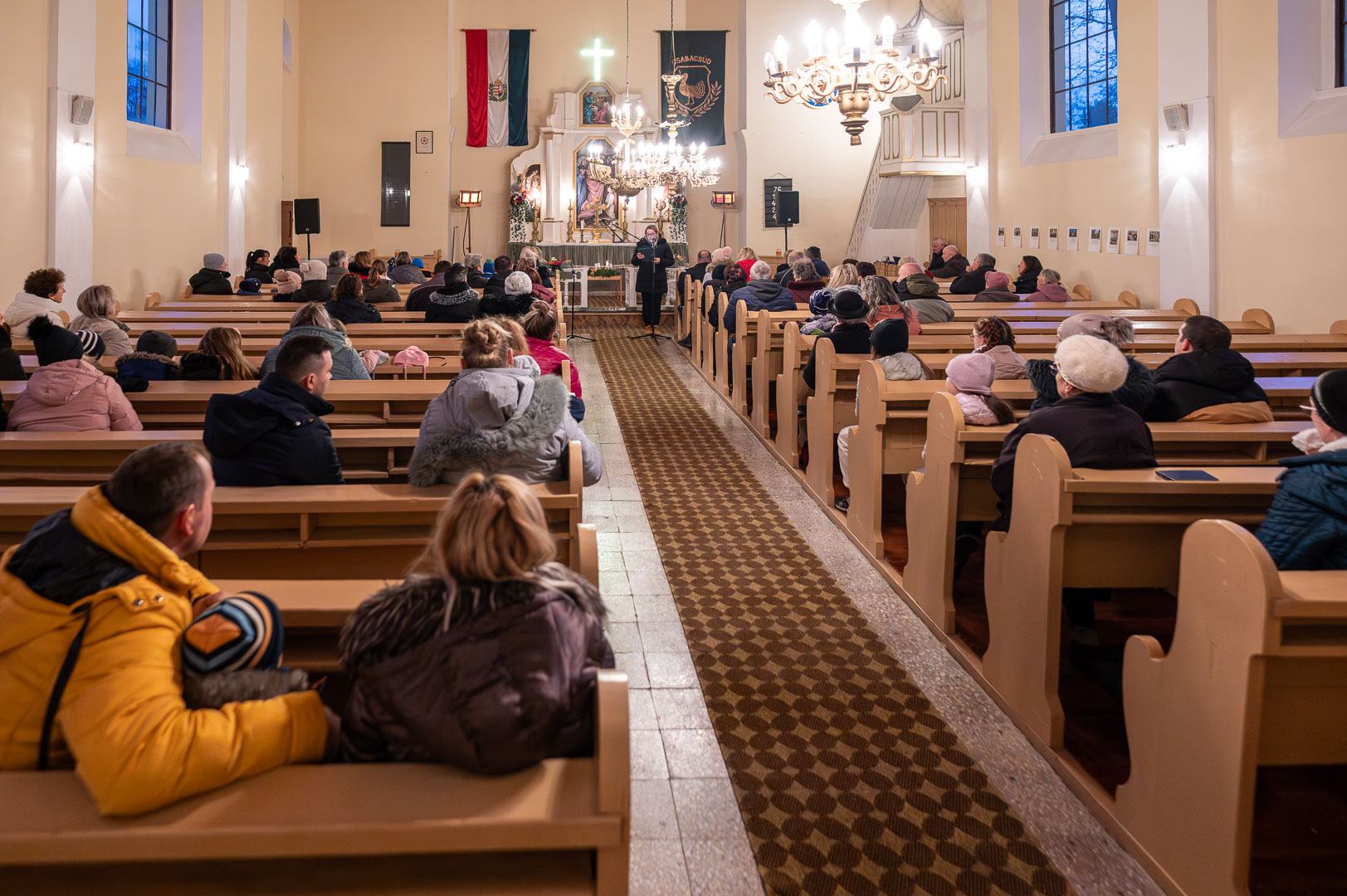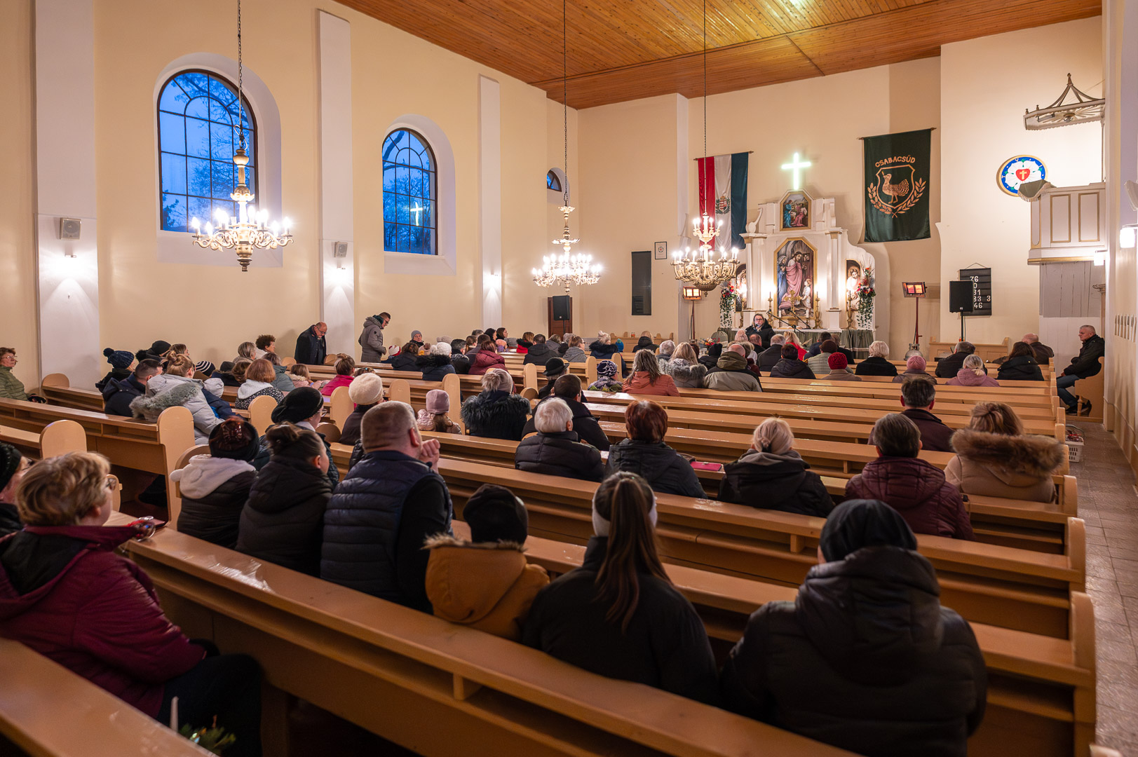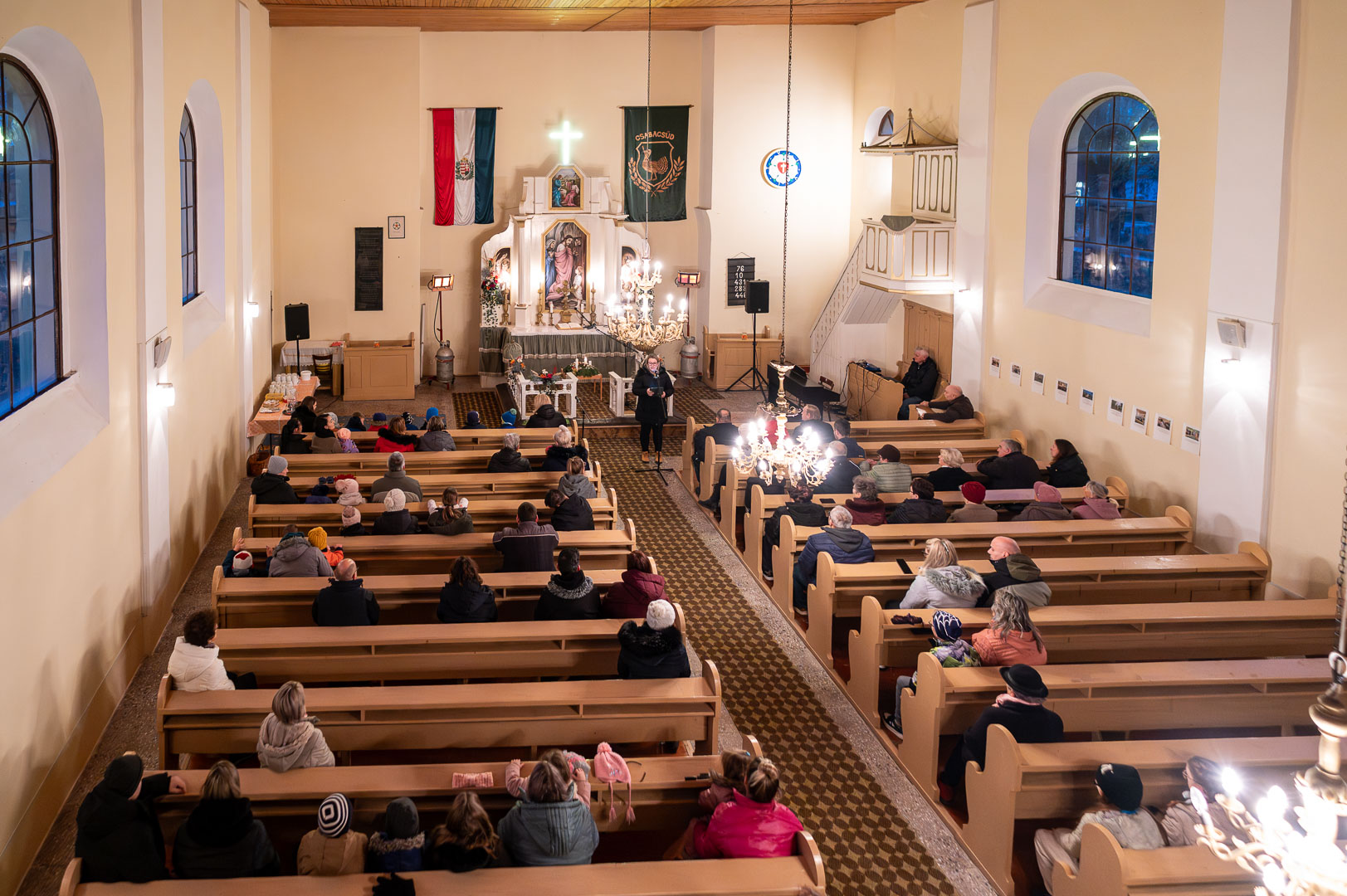Azt megelőzően az evangélikus templomban gyülekeztek a település lakói, hogy megnézzék a Hársliget Óvoda ovisainak műsorát, illetve meghallgassák Kisuczkiné Tusjak Edina, a Csabacsűdiek Baráti Köre elnökének és Tóth Tímea, a Hársliget Óvoda vezetőjének köszöntőjét, valamint Magyar-Paulik Enikő evangélikus lelkész szolgálatát.