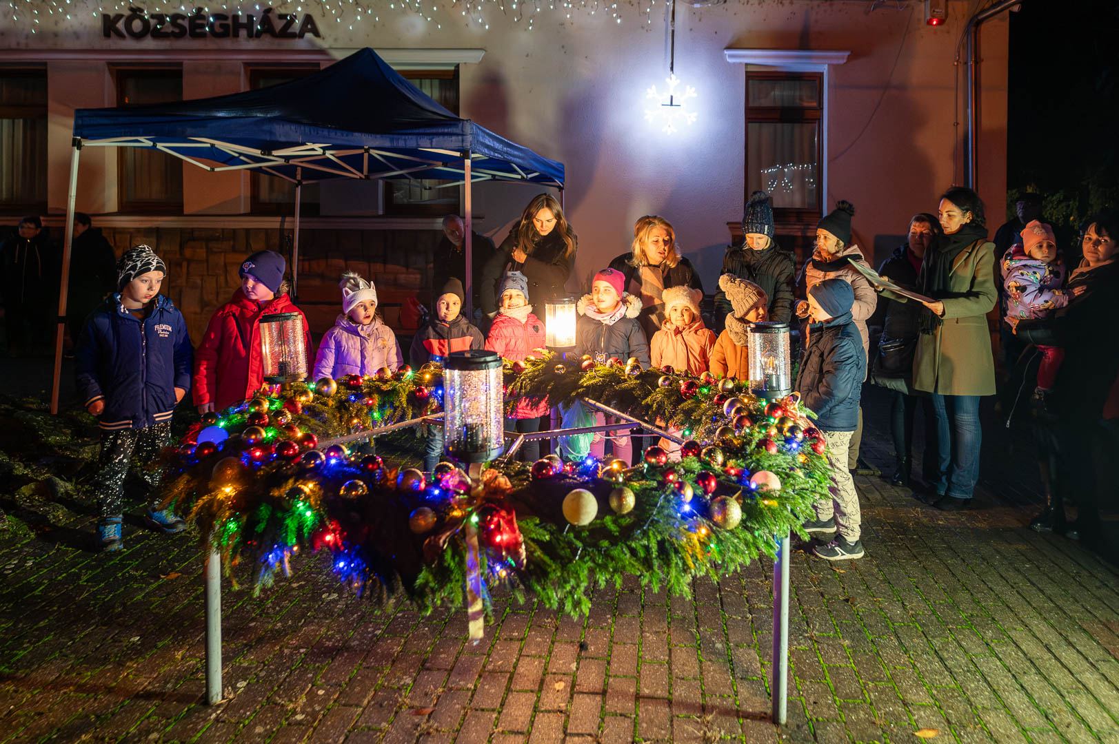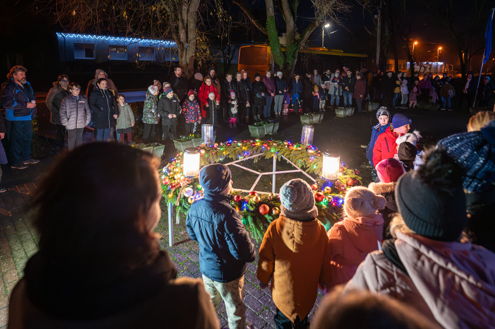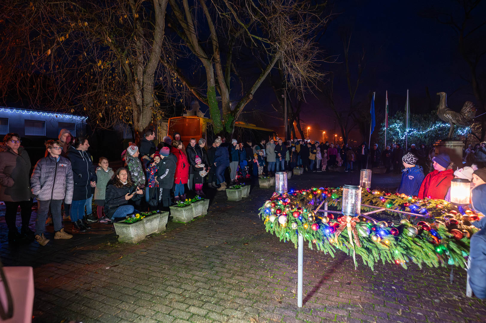 Vasárnap Csabacsűdön is felgyulladt a második gyertya a polgármesteri hivatal előtti téren felállított adventi koszorún.
