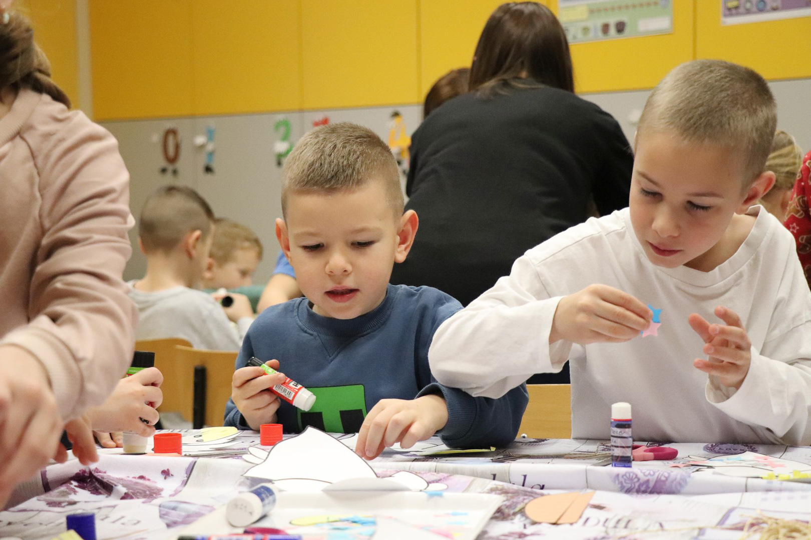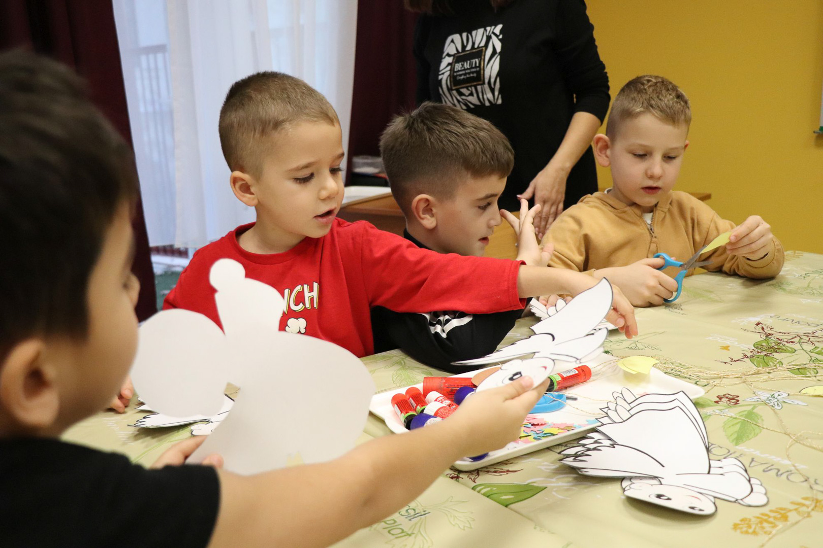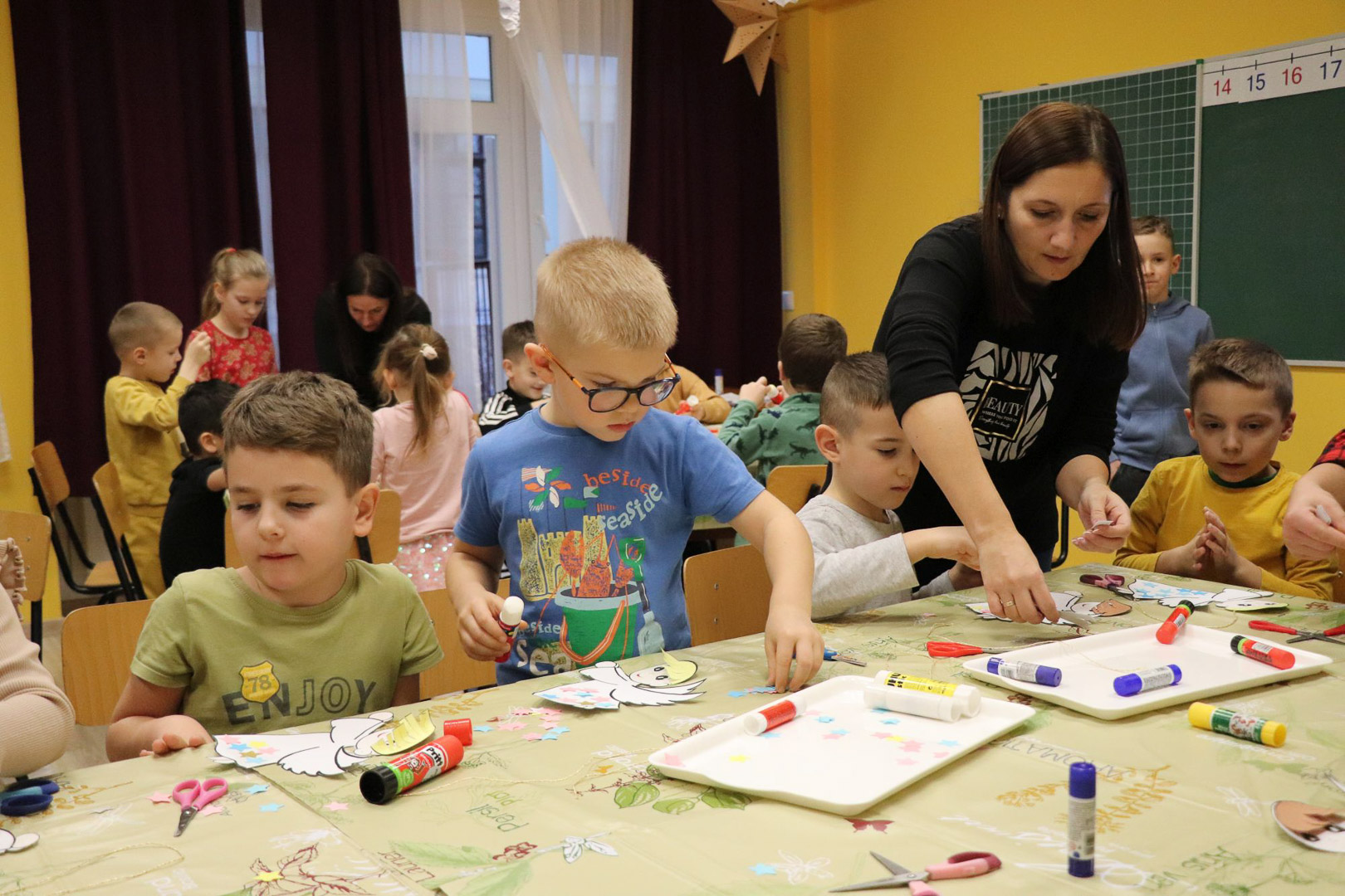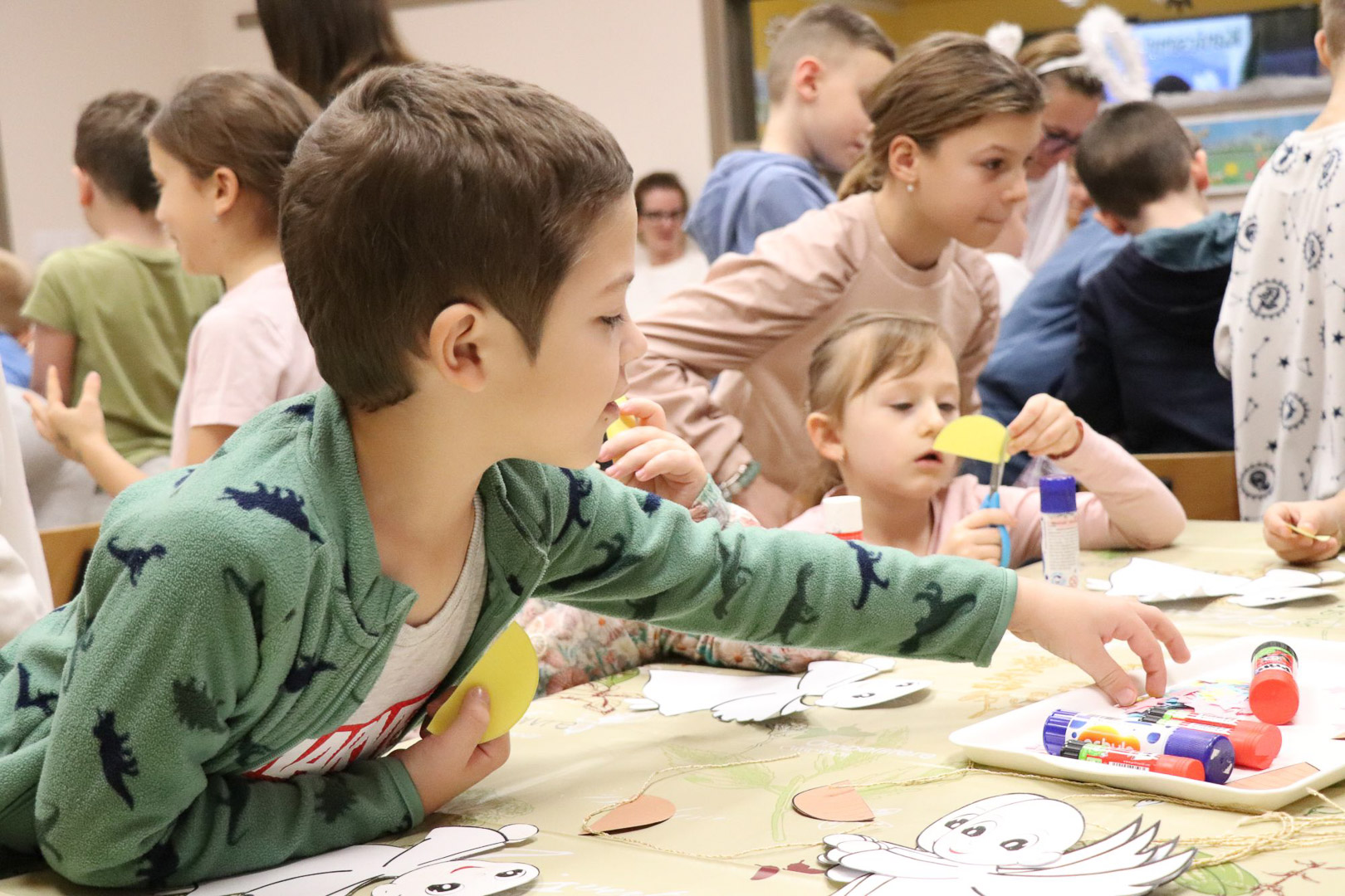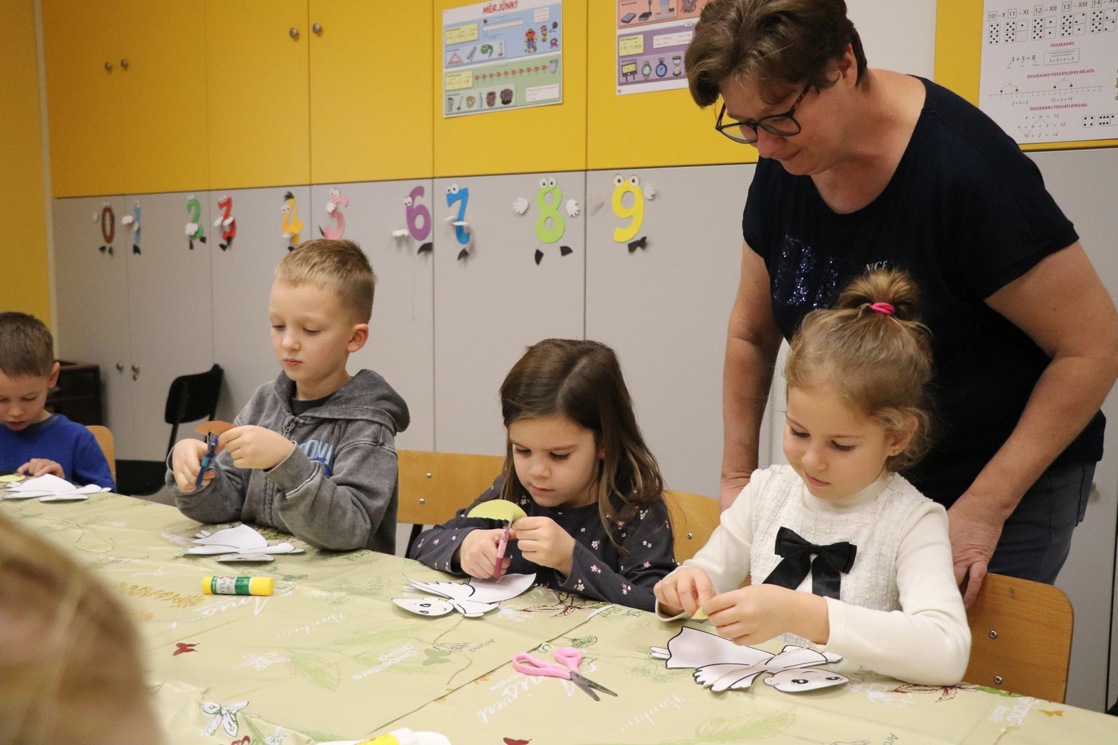 A karácsonyi angyalok énekkel is megajándékoztak bennünket, majd a varázslat alkotássá szelídült: minden pici óvodás kéz aprólékos munkával elkészítette saját kis papírangyalkáját. A játszóház végére így sok-sok kis angyal „repült” vissza a gyerekekkel a csoportszobákba, hírül víve az ünnep közeledtét.