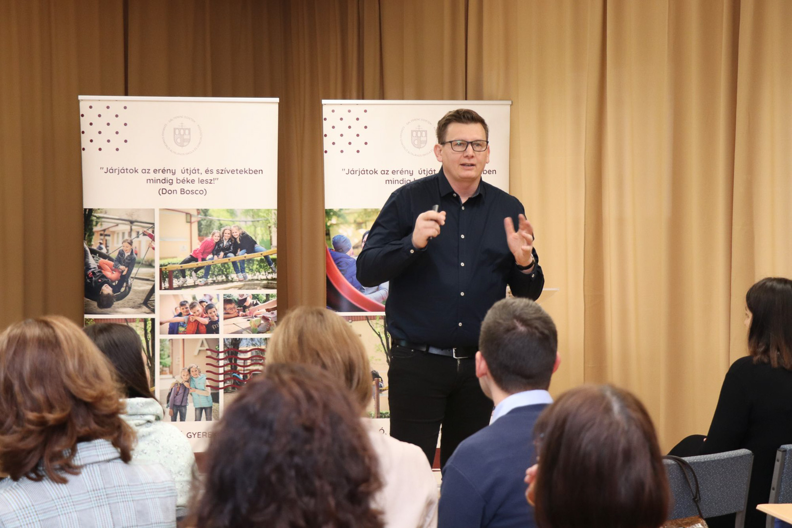 A szakmai találkozó célja a pedagógiai horizontok tágítása és a gyakorlati tapasztalatok megosztása volt. A nap indításaként a résztvevők plenáris előadáson vettek részt, amelyet Bíró Gyula, a GFE Szarvasi Gyakorlóintézményének főigazgatója, c. egyetemi docens, a GFE PK kisgyermeknevelési és módszertani tanszékének oktatója tartott. Az „Új utak és lehetőségek a pedagógiában…” című előadás során Bíró Gyula átfogó képet adott a modern oktatás kihívásairól és az azokra adható innovatív válaszokról, kijelölve az irányt a délelőtt további gyakorlati programjaihoz. Elméletből a gyakorlatba…