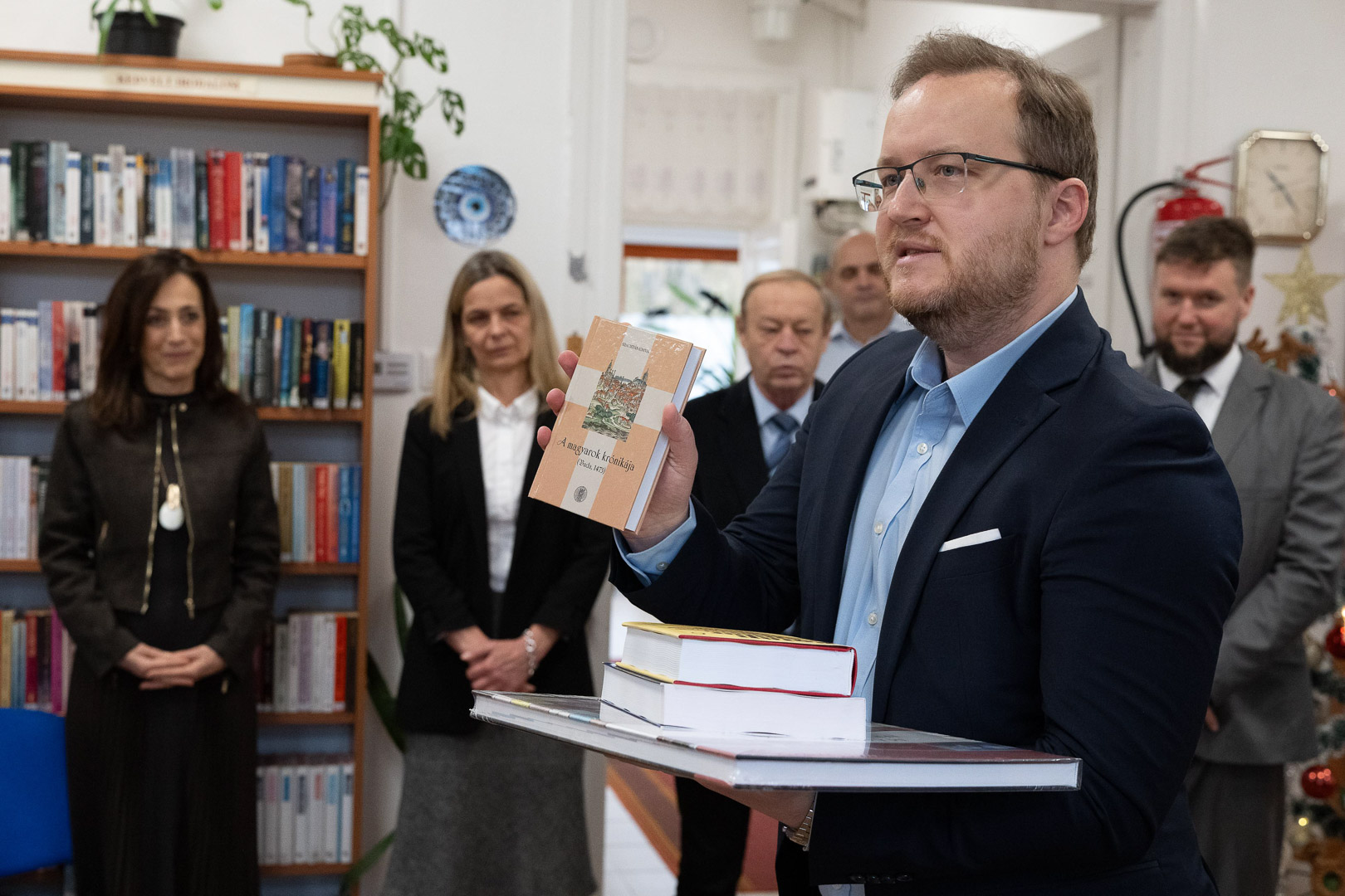 Rózsa Dávid, az Országos Széchényi Könyvtár főigazgatója köszönetet mondott a meghívásért, és kiemelte, hogy mindig öröm volt számára személyesen is jelen lenni a települési könyvtárak ünnepi eseményein. Országos adatokkal érzékeltette a könyvtárügy jó helyzetét: több mint 1,6 millió magyar használt rendszeresen könyvtárat, a kölcsönzések száma megközelítette a 18 milliót, és a könyvtárhasználat már meghaladta a 2019-es szintet, amihez a „Könyvtári kihívás” program is hozzájárult, és amelynek második fordulójában Csabacsűdnek is sok sikert kívánt. Hangsúlyozta, hogy céljuk az itt létrejött, felújított tér „élettel való megtöltése” volt, ennek támogatására az OSZK egy könyvcsomagot ajándékozott a könyvtárnak: bemutatta többek között „A magyarok krónikája” című kötetet, Petőfi 1848–49-es verseinek kritikai kiadását, egy gyermekeknek szóló értelmező és angol–magyar szótárt online tartalmakkal, valamint a „Magyarország Nemzeti Atlasza” sorozat „Állam és nemzet” kötetét. Beszéde végén jelezte, hogy a békéscsabai kollégák segítettek a kötetek feldolgozásában, reményét fejezte ki, hogy az olvasók sokat forgatták ezeket a könyveket, és ezzel is erősödött a könyvtár szakmai és közösségi szerepe.