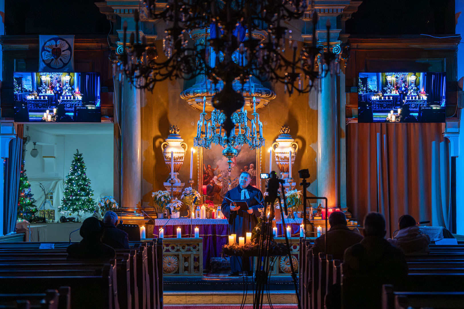 Lázár Zsolt evangélikus esperes Tessedik Sámuelre emlékezik 2025. december 27-én. (Fotó: Babák Zoltán)
