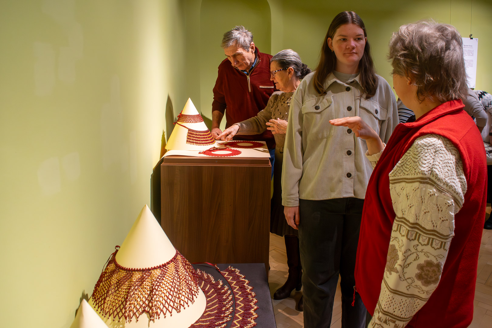 Megnyitóbeszédében Pusztai Zsolt, a Túri Fazekas Múzeum igazgatója néprajzi és iparművészeti szempontból is bemutatta a kiállítást. Előadásában hangsúlyozta a gyöngyök történelmi és kulturális jelentőségét, valamint azt, hogy a Kárpát-medence különböző régióiban milyen szerepet töltöttek be ezek a díszítőelemek a népviseletben. Külön kiemelte a kárpátaljai, sárközi és kalotaszegi hagyományokat, mely tájegységeken a gyöngyös díszítés a női viselet meghatározó része volt, és – ritkán bár – a férfiak öltözetén is megjelent.