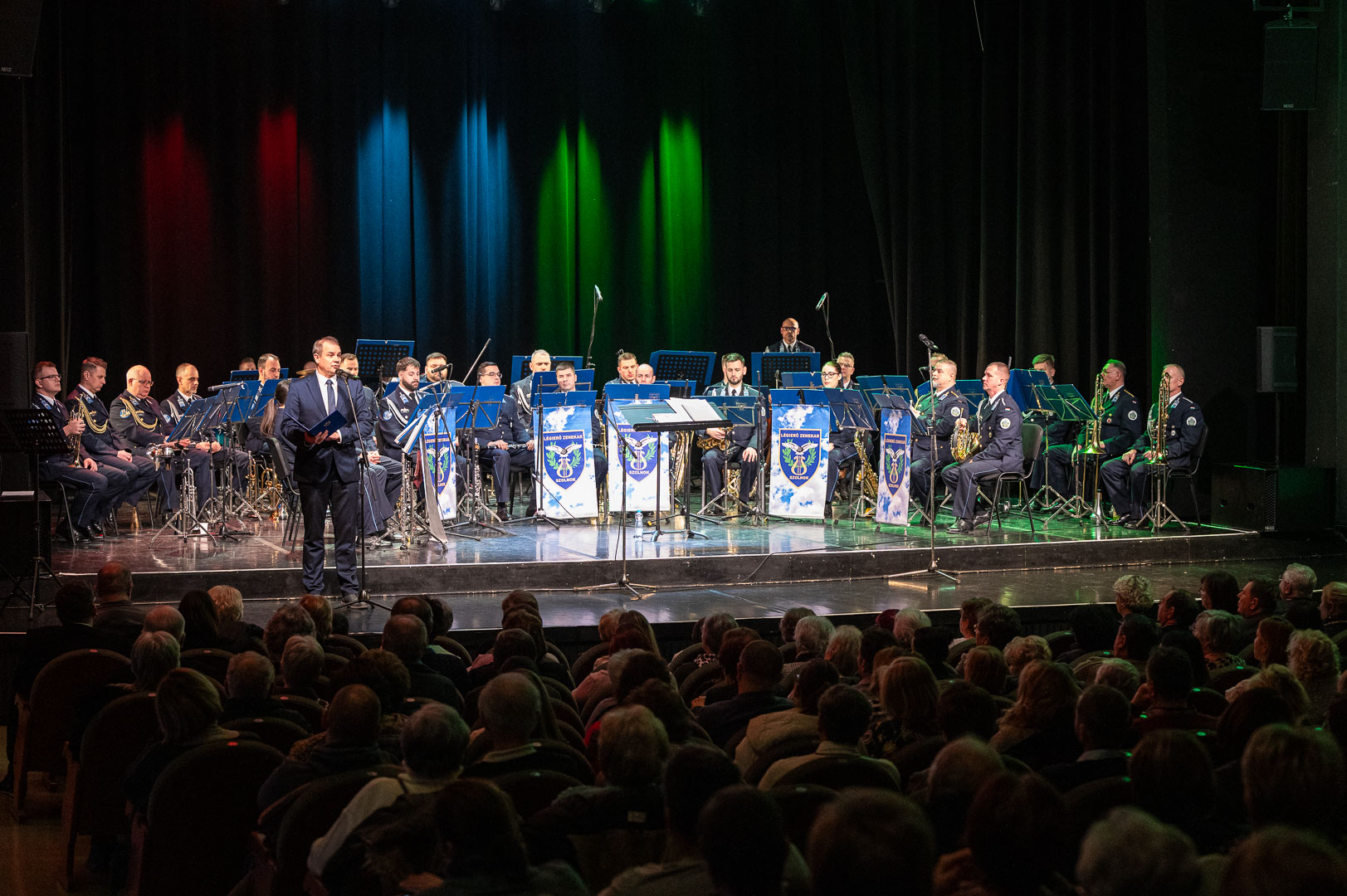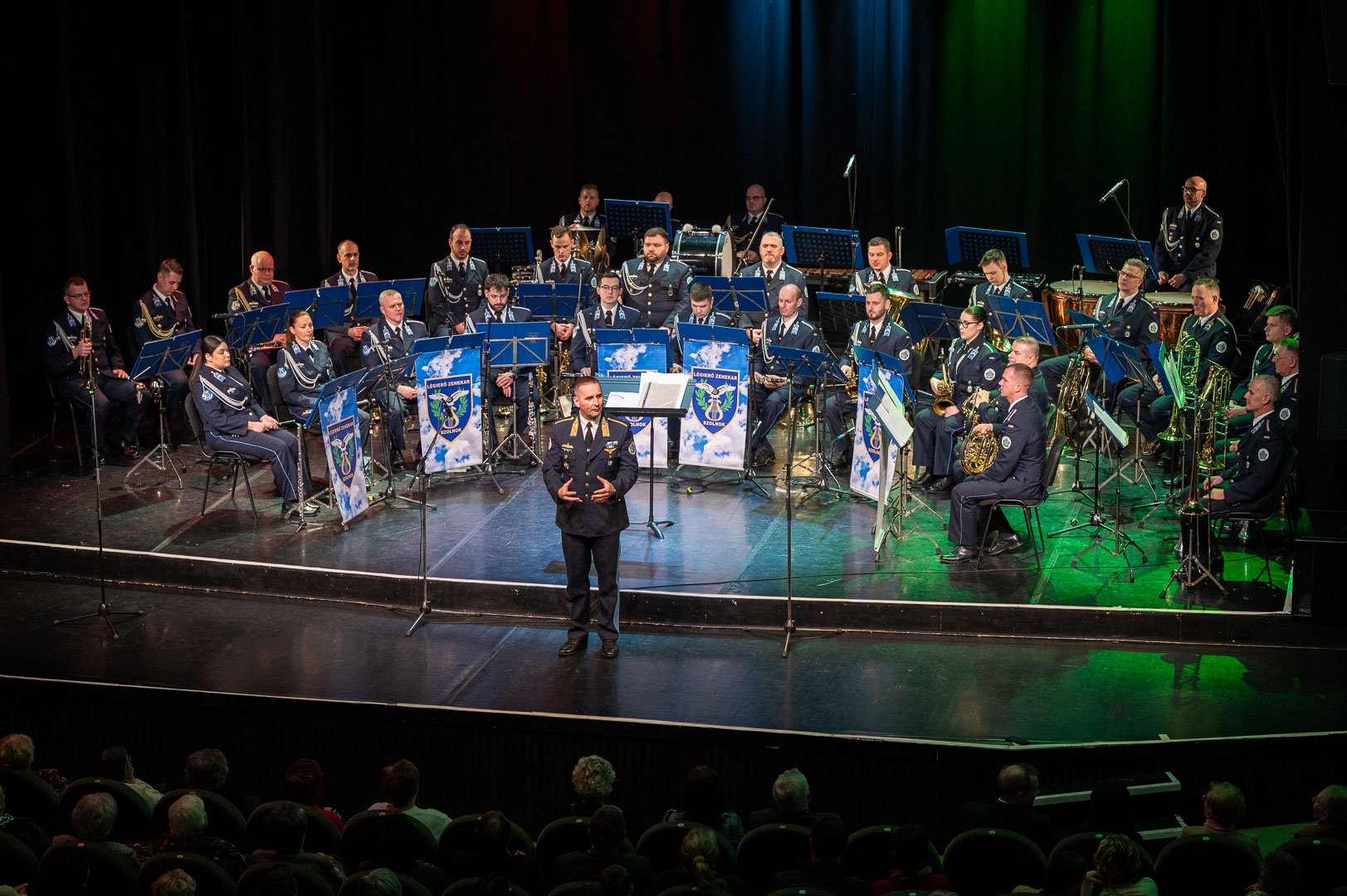 A Cervinus Teátrum színházterme megtelt zenekedvelőkkel, hogy meghallgassák a Szolnoki Légierő Zenekara magyar kultúra előtt tisztelgő előadását.