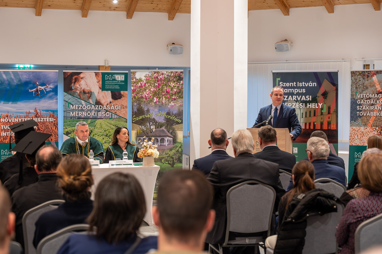 Hodálik Pál, Szarvas polgármestere beszédében hangsúlyozta a város és a Magyar Agrár- és Élettudományi Egyetem (MATE) közötti szoros együttműködés jelentőségét, amelynek köszönhetően sikerült megerősíteni a helyi agrárképzést és új alapokra helyezni a Szarvasi Campus jövőjét. Kiemelte, hogy Szarvas számára a mezőgazdasági oktatás nemcsak történelmi örökség – hiszen itt alapította Tessedik Sámuel Európa első mezőgazdasági szakiskoláját –, hanem a város fejlődésének egyik kulcsa is. Háláját fejezte ki a MATE vezetése iránt, amiért elkötelezetten támogatják, hogy a szarvasi képzési helyből önálló, folyamatosan fejlődő oktatási és kutatási központ váljon, és hosszú távon akár egy teljes kar is létrejöjjön.