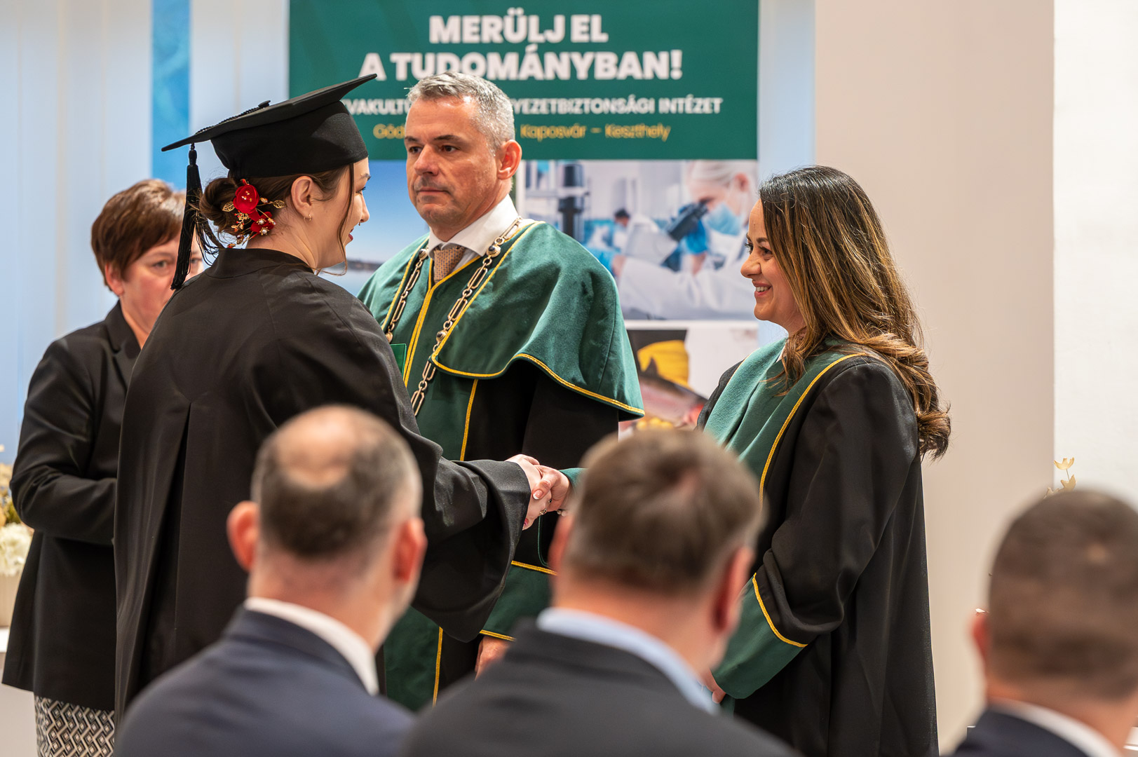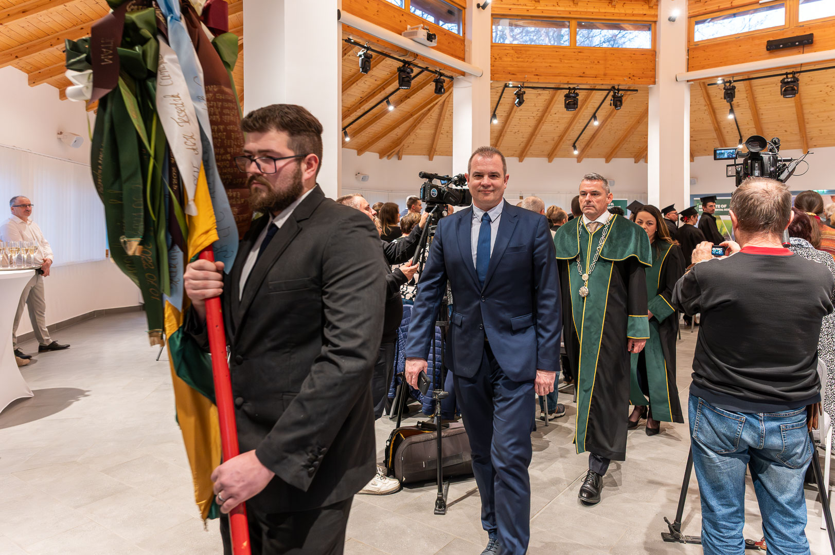A beszéd második felében az agrárium jövőbeli fontosságára hívta fel a figyelmet, rámutatva, hogy a vízhez, a talajhoz és az erőforrásokhoz való felelős viszony közös jövőnk alapja. Megköszöntte az oktatók lelkiismeretes munkáját és a családtagok támogató türelmét, amely elengedhetetlen volt a diplomáig vezető úton. Zárásként emlékeztette a végzetteket, hogy az Alma Mater kapui továbbra is nyitva állnak előttük, és visszavárják őket akár mesterképzésre, akár szakirányú továbbképzésekre, miközben sok sikert és jó egészséget kívánt szakmai pályafutásukhoz.