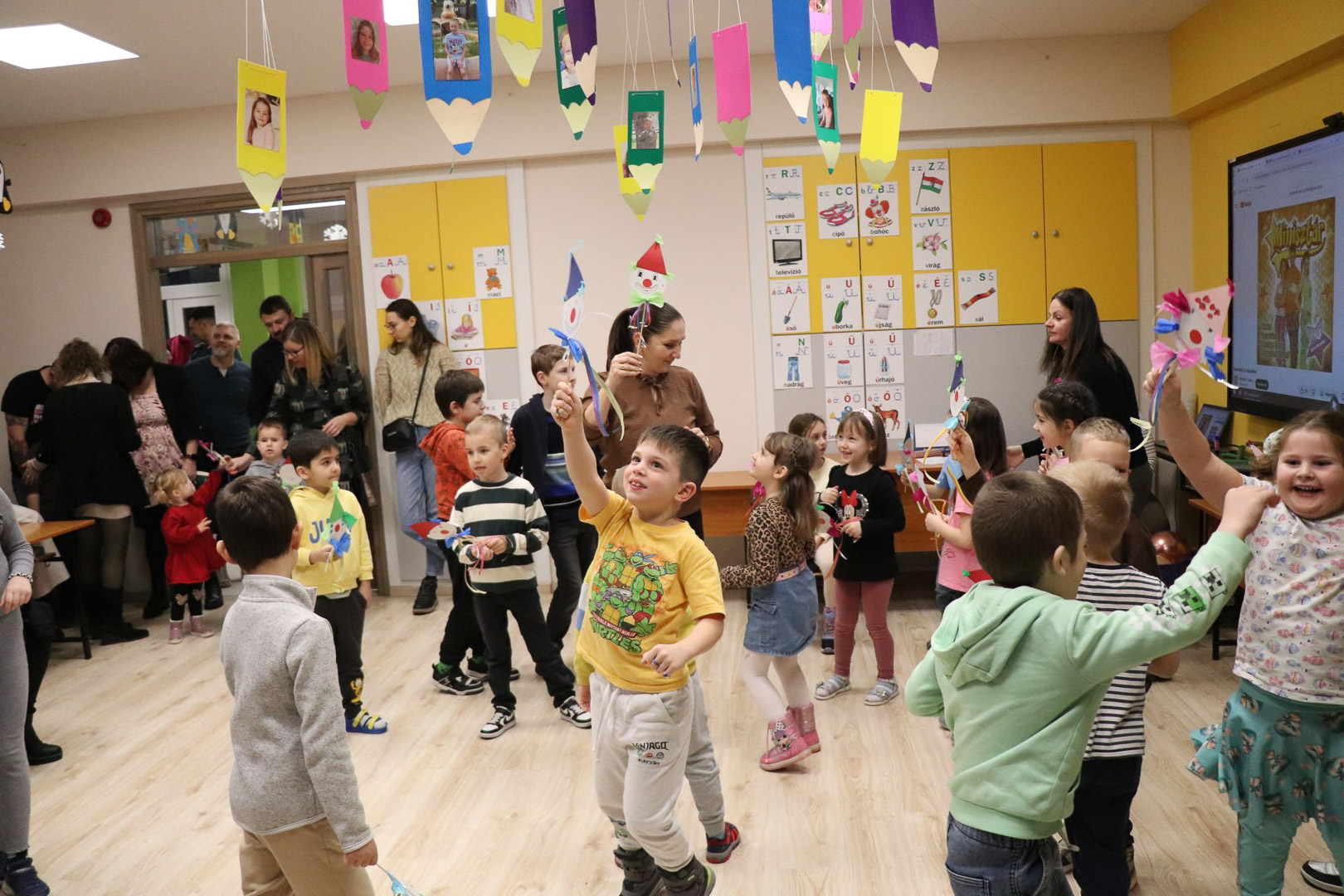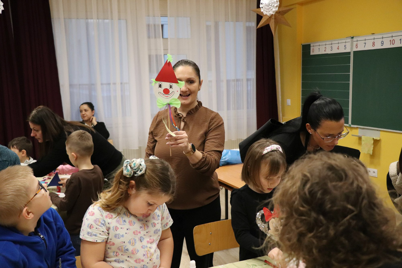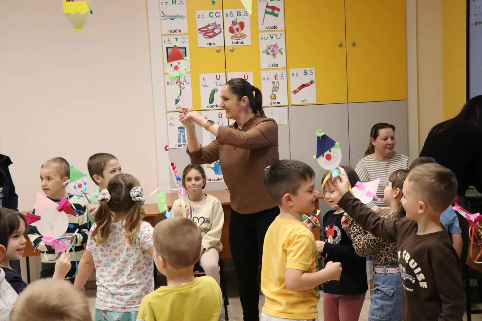 Volt nagy izgalom újra az intézményben, hiszen mi tanító nénik farsangi játszóházba vártuk az iskolába készülő gyermekeket és szüleiket február 3-án. Gyorsan bele is vágtunk hát télűző mulatságunkba! A farsangi hagyományok felelevenítése után verseltünk Jancsi bohócról, és énekeltünk egy jót együtt. Számos szórakoztató játékban – mint például a seprűtáncoltatásban és lufitáncban – vettünk részt, mindeközben még a számolást is gyakoroltuk. Pihenésképpen elkészítettük saját, piros orrú, vidám papírbohóc bábunkat is. A sok-sok játékot és kézműveskedést követően pedig nem maradt más hátra, mint egy igazi nagy közös mulatság, ahol nem csak a gyerekek, de a sok színes bohóc is táncra perdült. A jókedvű, közös délutánt egy kis vendégséggel zártuk.