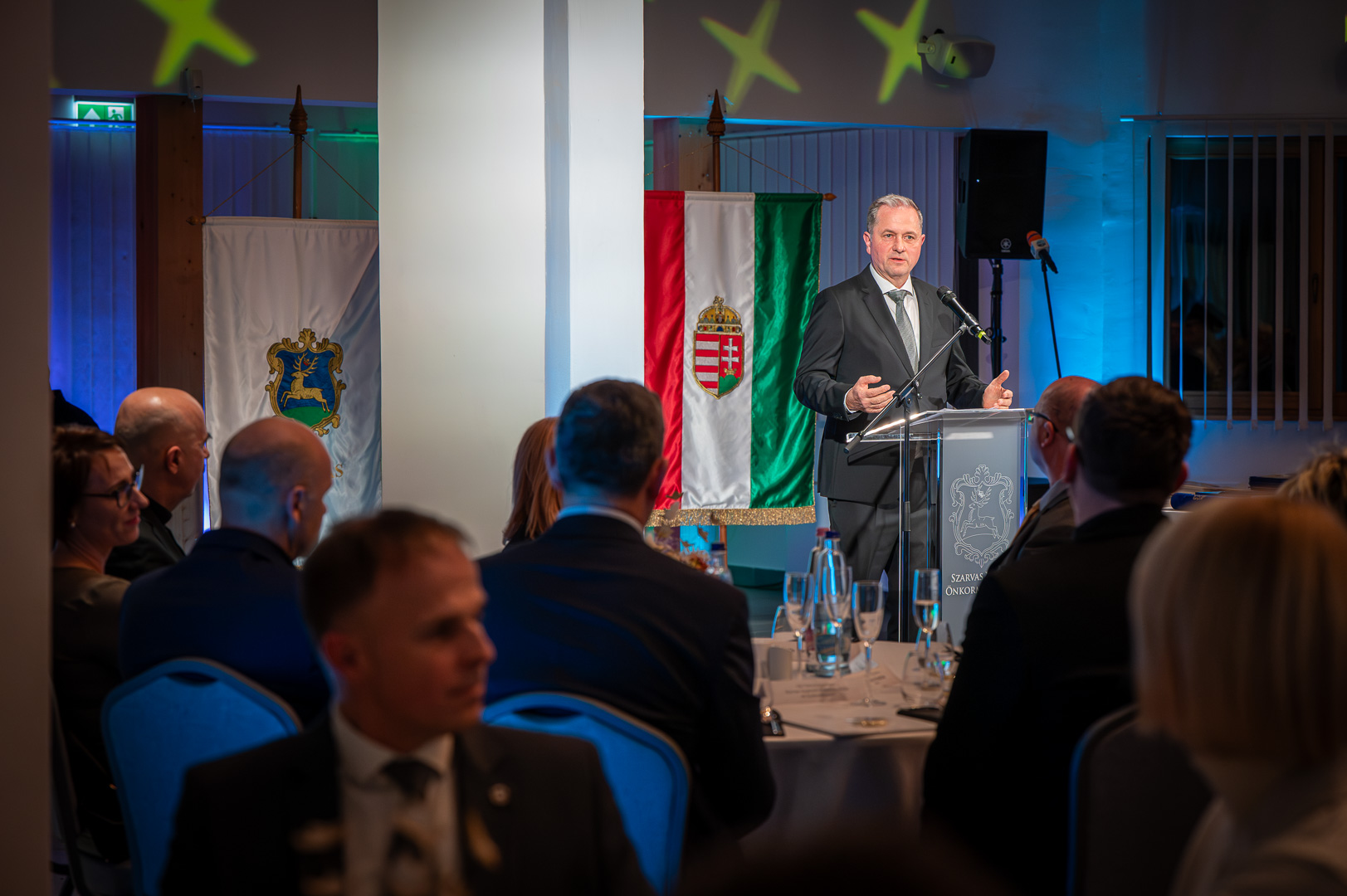 2025-ben 2215 adóalanyt tartottak nyilván, ami nagyjából azt jelenti, minden hetedik szarvasi valamilyen vállalkozásban érdekelt, ami országosan is kiemelkedő szám, mondta országgyűlési képviselőnket követően a pulpitusra lépő Hodálik Pál polgármester, majd tételesen beszámolt arról, mire is költötte a város a vele szemközt ülő vállalkozásoktól beszedett adóforintokat.