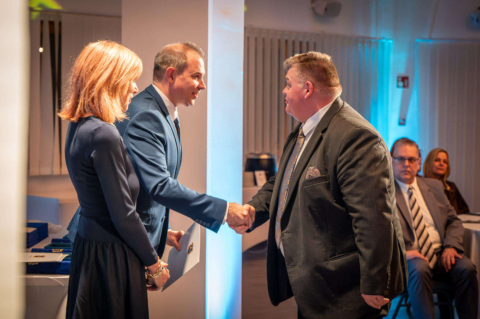 Beszámolóját követően egyesével szólították a legnagyobb adózókat, hogy Horváthné dr. Kepenyes Edit jegyzővel, egyben a helyi adóhatóság vezetőjével köszönő oklevelet adjanak át számukra, a TOP3 adófizetőnek pedig egy kristályból készült díjat.