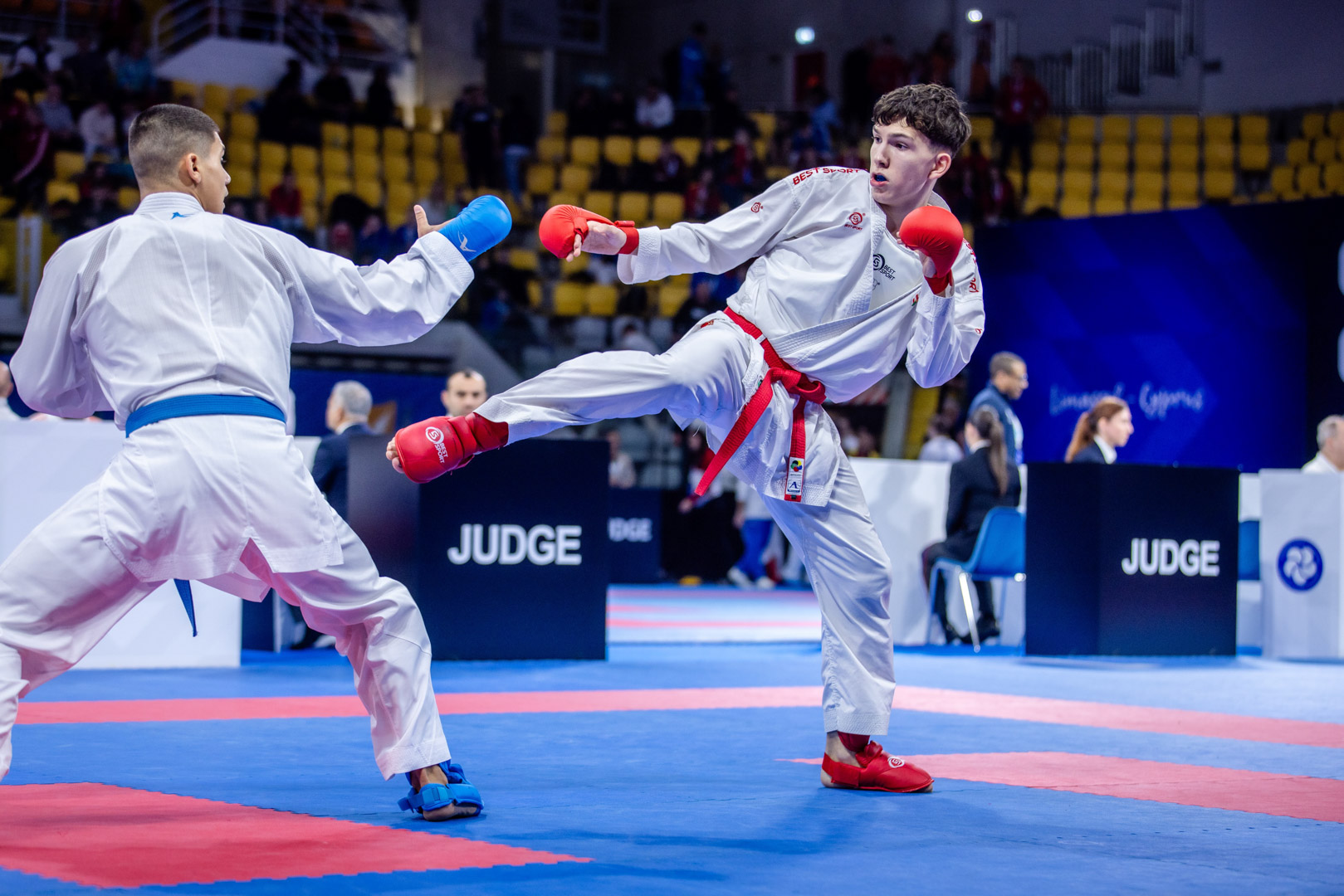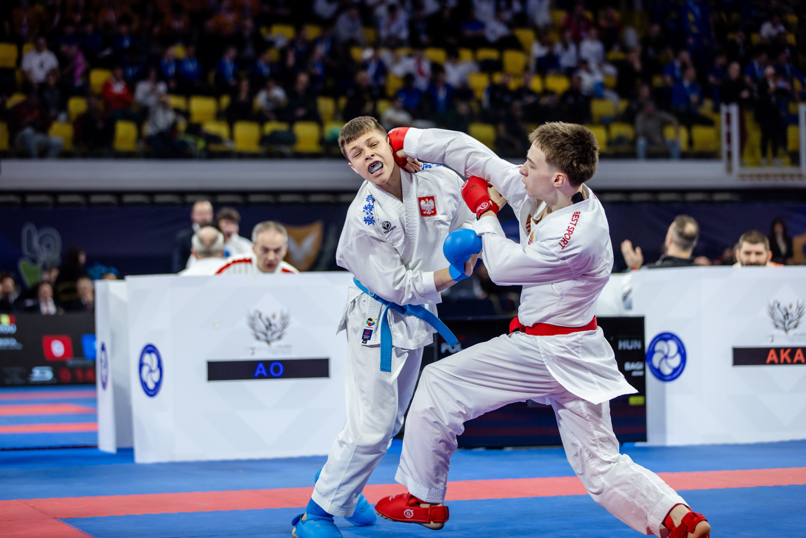 Bagi Ádám kezdett. A válogatott edzők visszajelzése alapján az egyik legjobb munkát végezte az edzőtáborban, ám a tét a 14 éves fiúra hatott az első alkalommal. Mérkőzését végig uralta, de két, rá nem jellemző pillanatnyi megtorpanását kihasználta ellenfele. Bár ezt követően mindent elkövetett a fordításért, és a végén sikerült is tisztán fejbe rúgnia a későbbi bronzérmes lengyel Simon Budnyt, erre már sajnos pontot nem kapott a bíróktól.