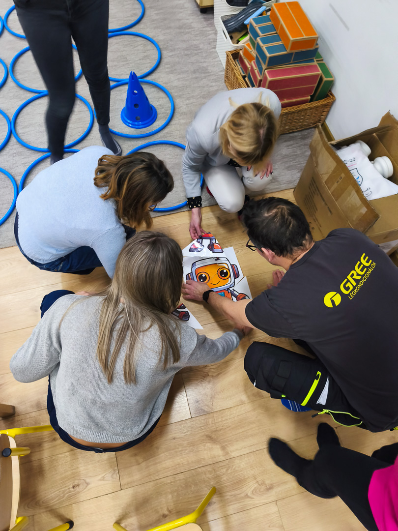 A műhelymunka hangsúlyos eleme volt az élményszerű, gyakorlati tapasztalatszerzés. A szülők nem csupán megfigyelőként vettek részt a foglalkozáson, hanem aktív szereplőként maguk is kipróbálhatták azokat a játékokat és feladatokat, amelyeket a gyermekek a tehetséggondozó foglalkozások során alkalmaznak. A közös tevékenységek során a szülők megtapasztalhatták, miként válik a játék, a tanulás a fejlesztés eszközévé, valamint hogyan támogatja a robotika a gyermekek motivációját és kitartását.
