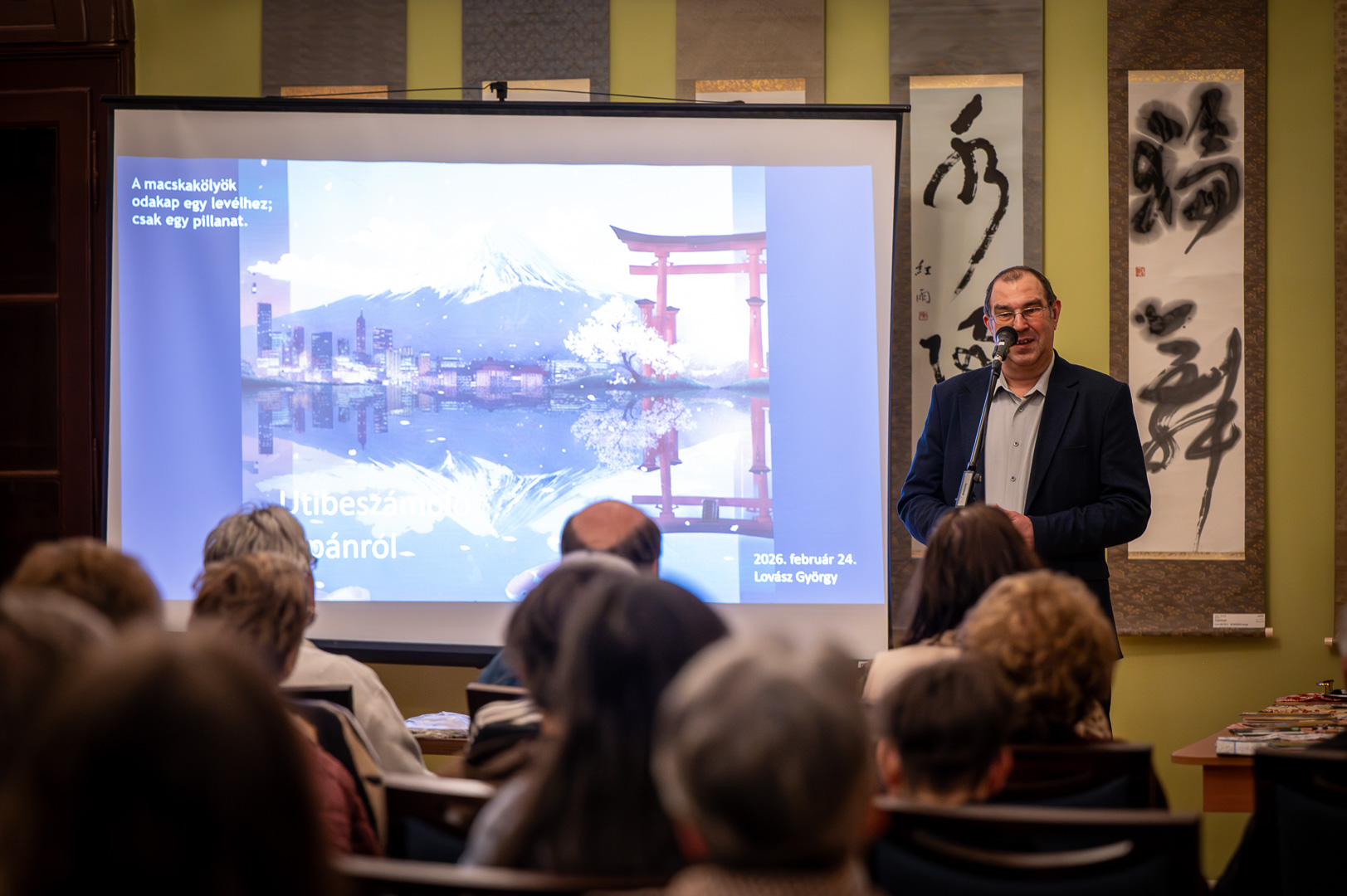 Lovász György számára Japán nem csupán egy úticél a térképen, hanem egy gyerekkori álom beteljesülése. Az 1981-ben Szarvason indult karate-pályafutása alapozta meg azt a vágyat, hogy eljusson a harcművészetek őshazájába. Első, 1994-es útja óta többször is visszatért a szigetországba, legutóbb 2023-ban. Tapasztalatait a Tessedik Sámuel Múzeumban osztotta meg az érdeklődőkkel, egy olyan világot festve le, ahol a 300 km/órával száguldó vonatok és a többszáz éves, szög nélkül épült fa templomok tökéletes harmóniában élnek egymás mellett.
