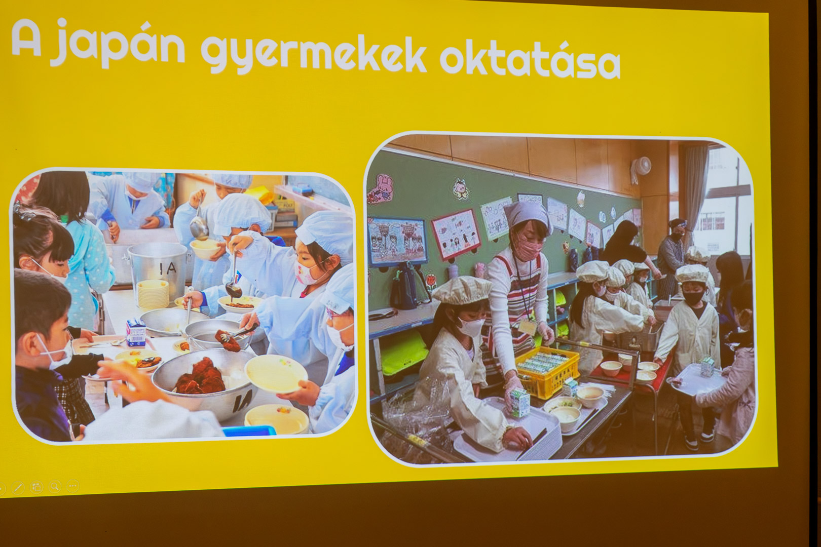 Az előadó részletes képet festett a japán hétköznapokról. Elmondta, hogy Japánban ma már sok családban mindkét szülő dolgozik, és a férfiak is egyre aktívabban vesznek részt a házimunkában és a gyermeknevelésben. Saját példáival illusztrálta a híres japán munkakultúrát: voltak kollégái, akik este tízkor induló vonatig dolgoztak, ami jól mutatja a japán szorgalom mélységét. A vacsora kiemelt közös családi eseménynek számít: hagyományosan frissen készült étel kerül az asztalra, amelyet a család együtt fogyaszt el.