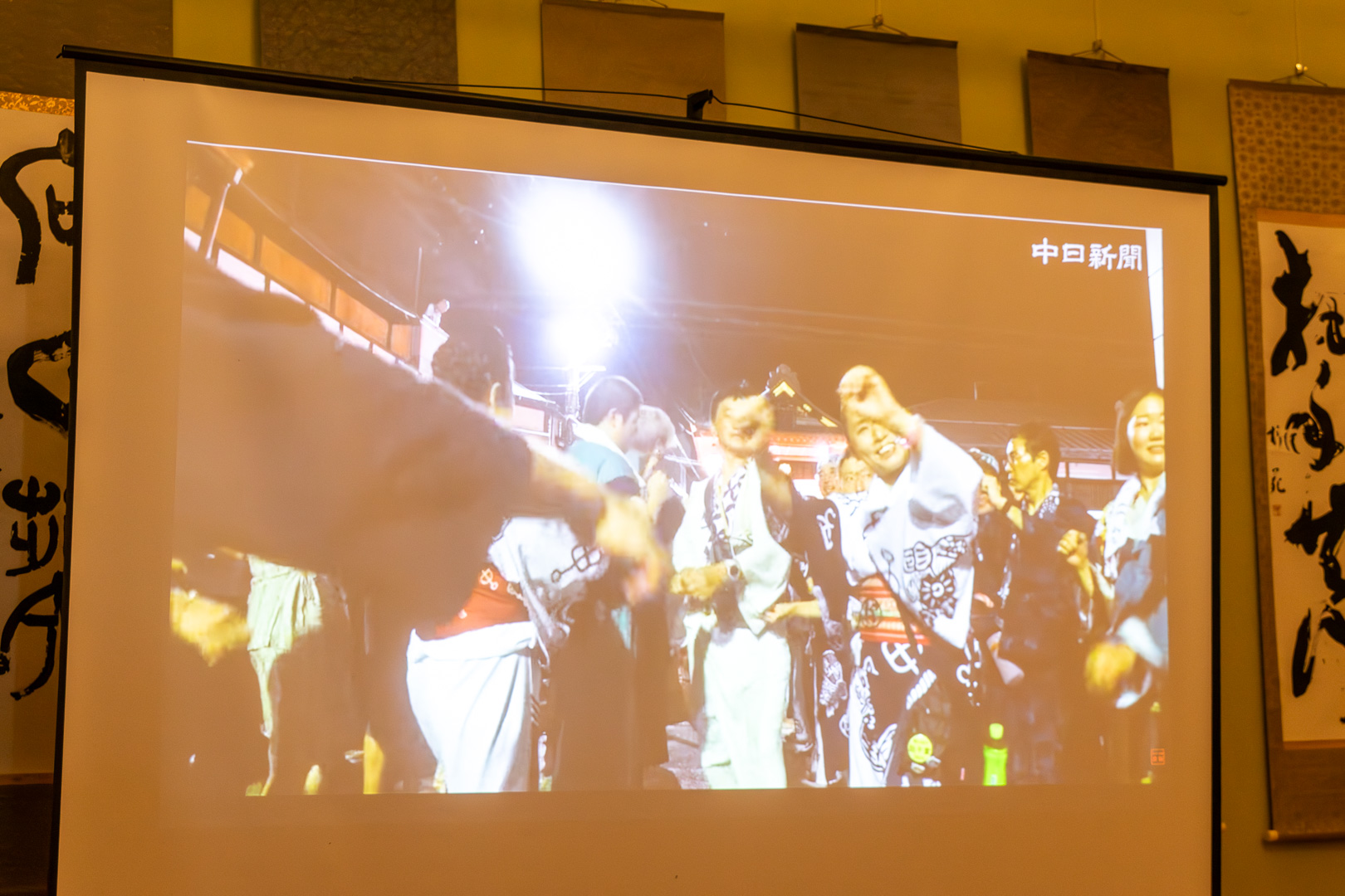Nyári fesztiválokról és táncokról: Az előadó videót is mutatott a híres bon odori táncról, valamint a különösen fárasztó, akár egész éjszakán át tartó Gujo Odori hagyományról.