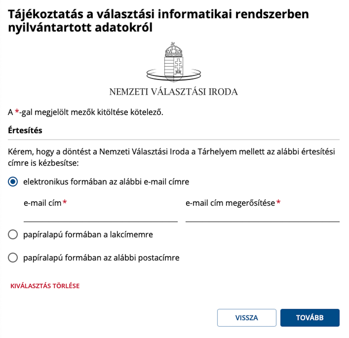 - A kérelem benyújtásához szükséges nyomtatvány letölthető a www.valasztas.hu oldalról.