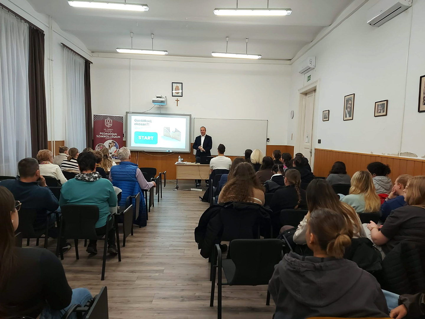 2026. március 31-én a Gál Ferenc Egyetem Pedagógiai Kar falai között a pénzügyi tudatosság került a fókuszba. Hogyan igazodjunk el a pénzügyek világában, és miként hozzunk felelős döntéseket már fiatal felnőttként? Ezekre a kérdésekre keresték a választ a Gál Ferenc Egyetem Pedagógiai Karán, ahol Dr. Árpási Zoltán a Gál Ferenc Egyetem Gazdasági Karának dékánja tartott érdekfeszítő előadást a legfontosabb gazdasági összefüggésekről.