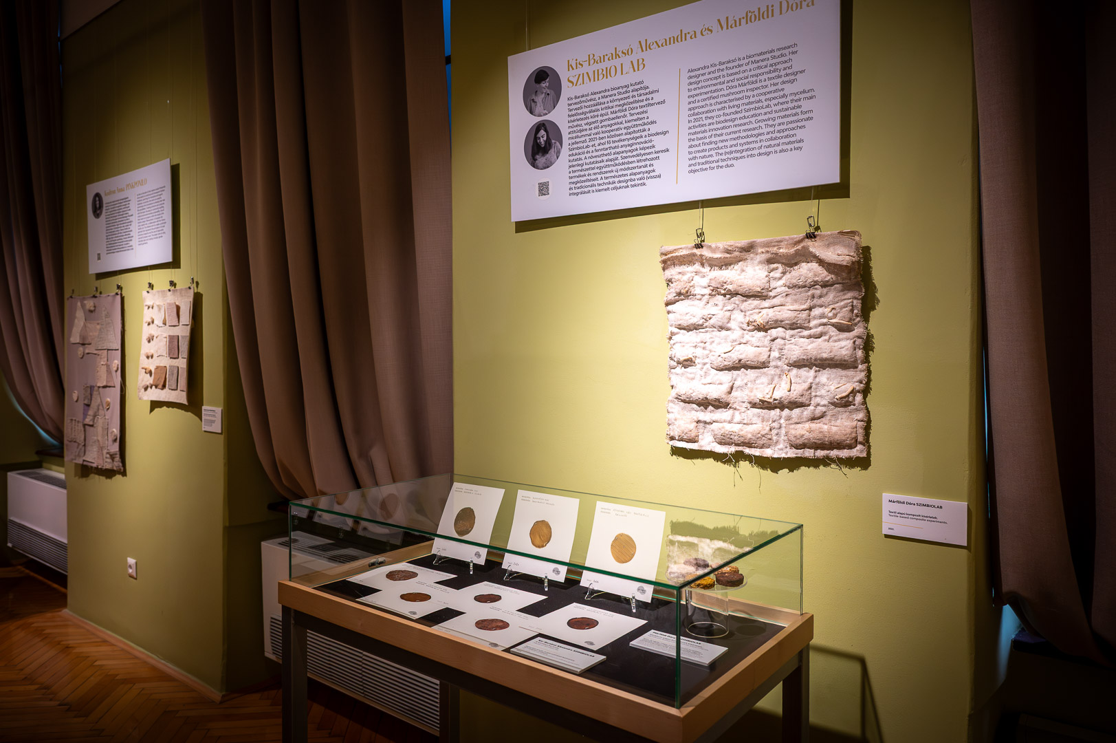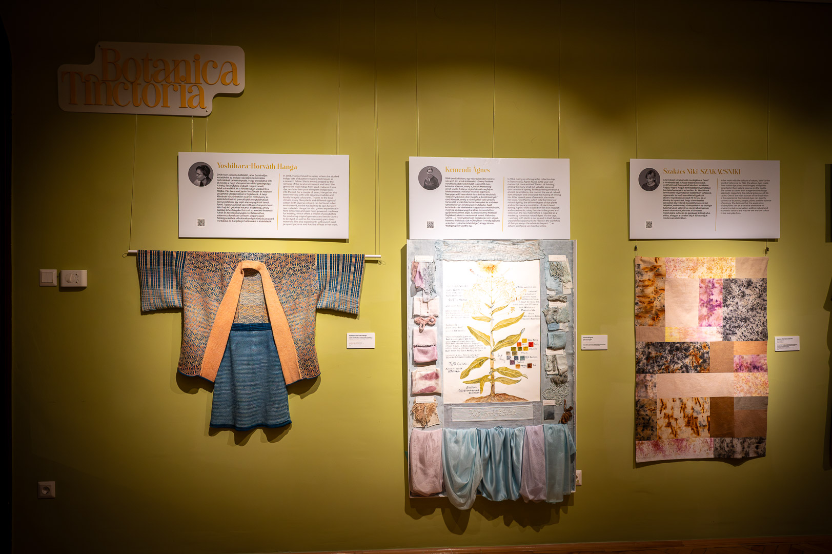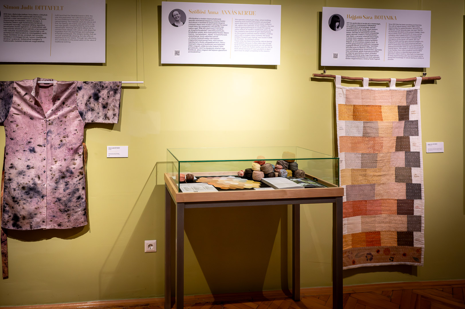 A fenntarthatóságot tudományos adatok is alátámasztják: az Innovatext bevizsgálta a természetes alapanyagú textíliákat, elemezve azok kopásállóságát, fény- és mosásállóságát, melynek eredményei a kiállítás első tábláján böngészhetőek.