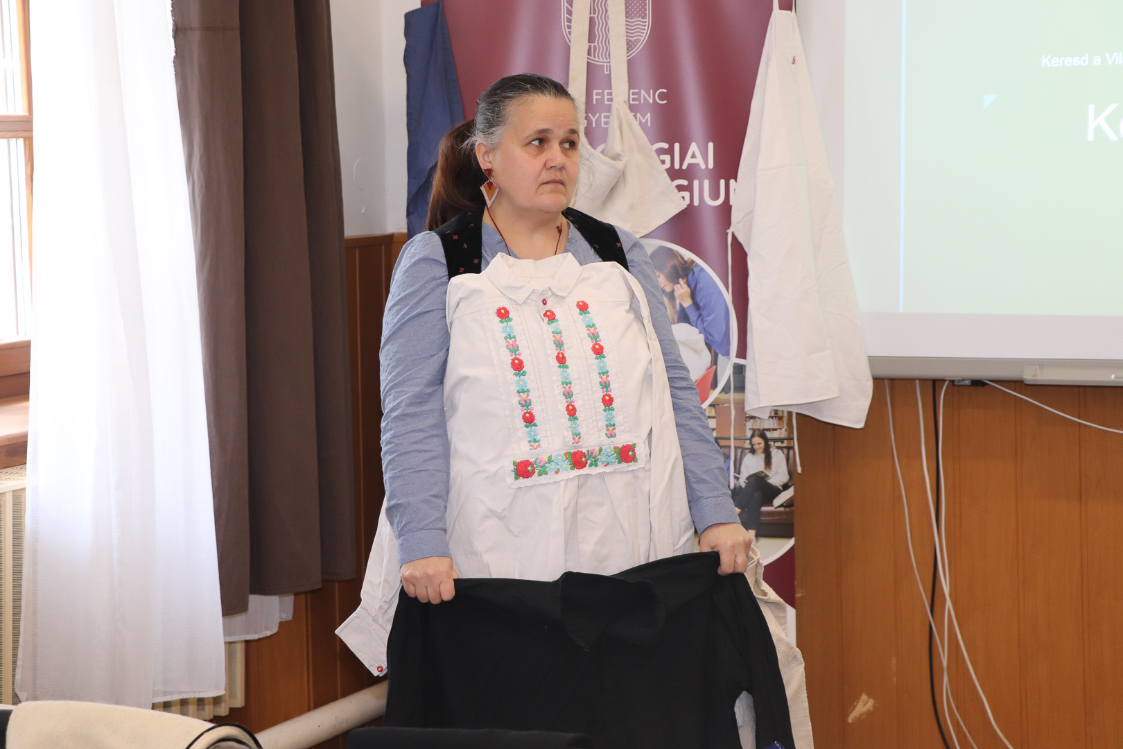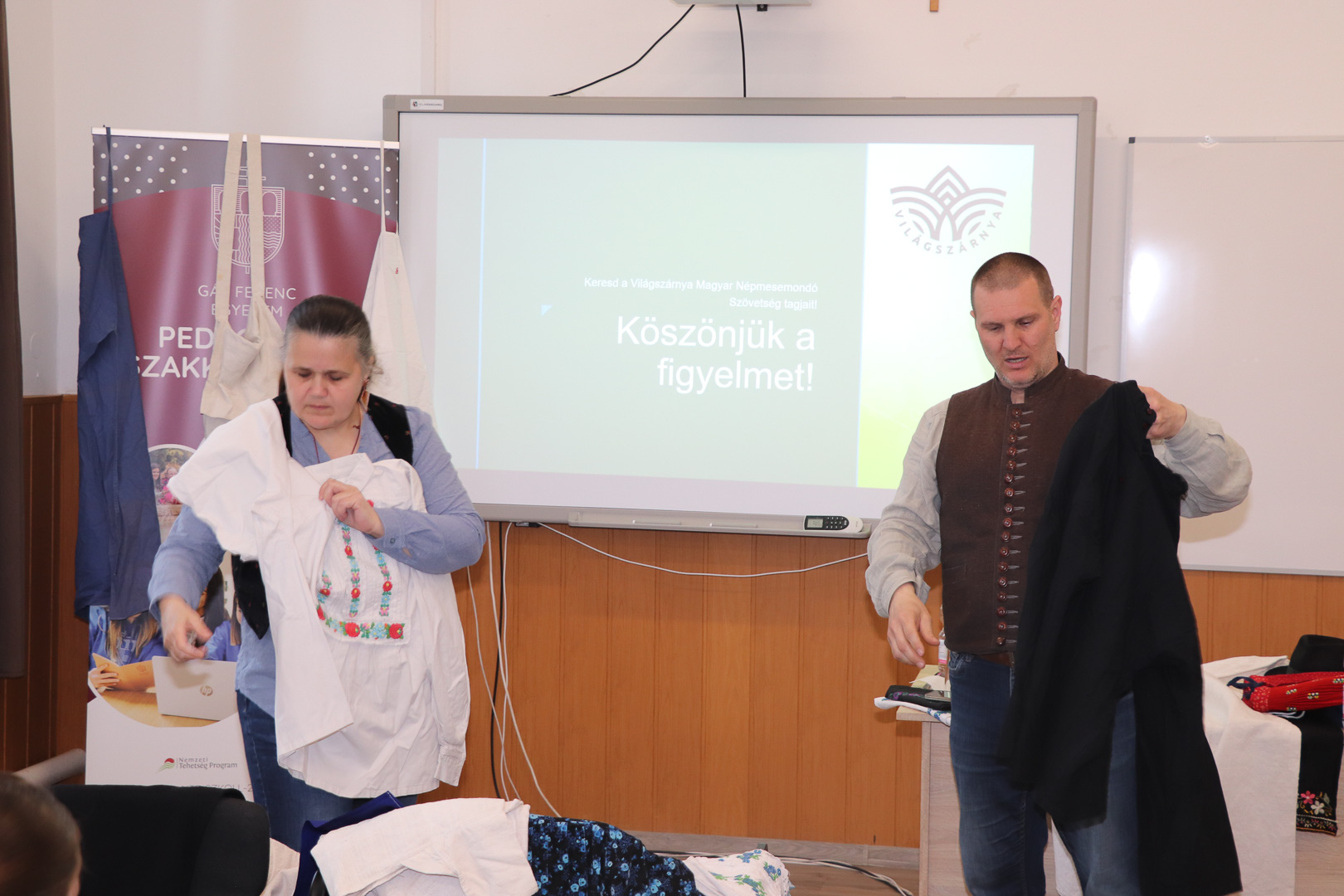 „A mai hallgatóság számára ezek a szavak gyakran már ismeretlenek, pedig a mesebeli szegénylegény vagy koldus ruházata mögött több évszázad falusi kultúrája rejtőzik” – hangzott el a gyakorlati bemutatón, amely segített vizuálisan is elhelyezni a mesék hőseit.
