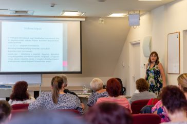 • Csermely Ildikó a Békés Vármegyei Kereskedelmi és Iparkamaránál tartott előadása során.