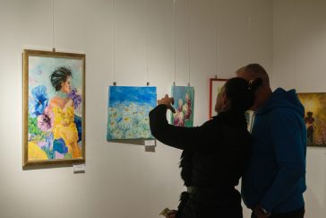 • Látogatók Baráth Nóra kiállításának megnyitóján.