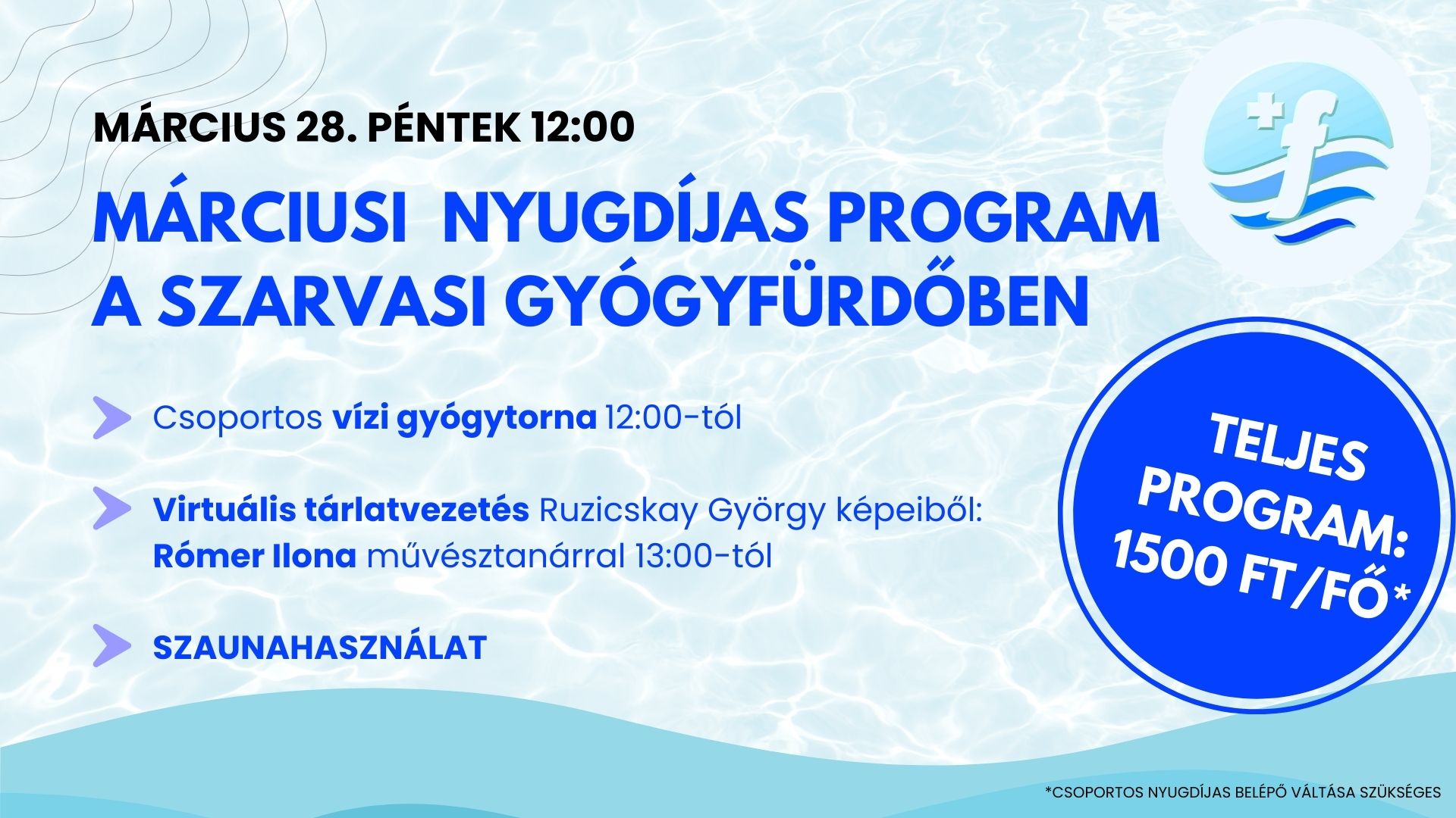 Csoportos vízi gyógytorna virtuális tárlatvezetésselpént28márc12:0012:00 Szent Klára Gyógyfürdő, Kossuth u. 23.Completed