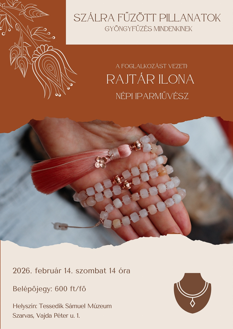 Gyöngyfűző foglalkozás Rajtár Ilona népi iparművésszelszo14feb14:0014:00 Tessedik Sámuel Múzeum, Vajda Péter u. 1.Completed