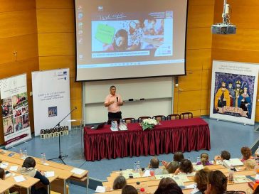 • Bíró Gyula író, a GFE PK oktatója, c. egyetemi docens a Cervus Hostel társalgójában tartott irodalmi esten március 18-án.