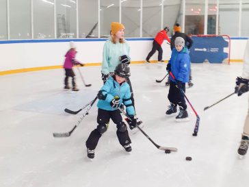 • Közös fotózkodás a szülők-gyerekek játék félidejében 2023. január 1-én a szarvasi jégpályán