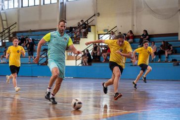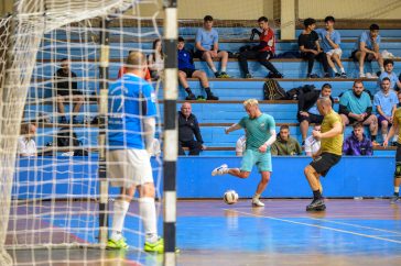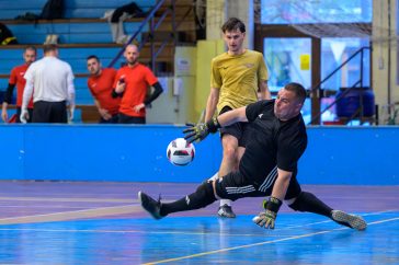 • Az első félidőben jól tartotta magát a Gold a Pro Gym ellenében. A képen Szécsi Rajmond (Pro Gym) és Moleri Roberto (FC Gold) versenye a labdáért.