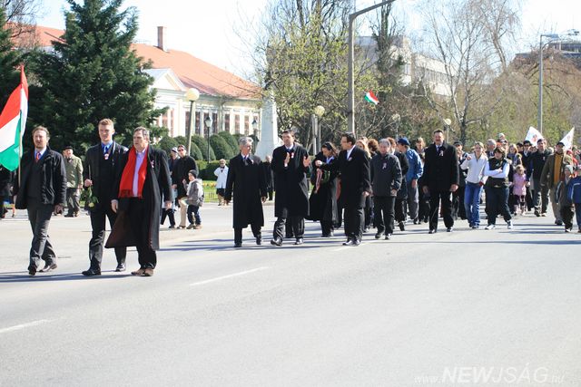 Igazán színvonalas ünnepséggel emlékeztünk meg az 1848. március 15-éről. Az ünnepség-sorozat a Templomkertben kezdődött a 48-as emlékműnél, ahol a város vezetői rövid beszédekkel, majd a Regionális Színház művészei műsorral emlékeztek a forradalomra Ez után a város lakói, szervezetei koszorúkat helyeztek el az emlékmű talapzatánál. Innen a Kossuth-szoborhoz vonult a tömeg, ahol további koszorúzás következett a Szarvasi Rezesbanda forradalmi dalainak kíséretében. A következő állomás az egykori Bárány-fogadó volt, ahova lovas huszárok vezetésével érkezetek az ünneplők. Postakocsin érkezett és hozta a pesti forradalom hírét Derzsi György színművész. Néhány koszorú elhelyezése után a tömeg a volt Honvédkórházhoz indult. Útközben, a Réthy-nyomda előtt gyerekek röplapot osztogattak és a 12 pontot kiabálták. A ma, múzeumként szolgáló egykori kórház előtt toborzót tartottak a Tessedik Táncegyüttes táncosainak közreműködésével, majd Dr. Zima János tárogatón játszott. Az utolsó stáció az Evangélikus Ótemplom volt. Itt Lázár Zsolt és Horváth Olivér lelkészek az 1848. március 23-i Placskó-beszéd részleteivel emlékeztek a forradalomra.