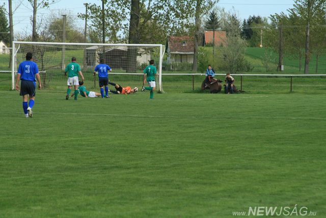 Szentandrás az első félidőben kapott egy négyest, pedig hazai helyzet is adódott szép számmal. Sajnos az ellenfél kapujának szélessége harmada, magassága negyede volt annak, amire szükség lett volna egy döntetlennel való félidőzáráshoz. Erwin szabadidejében, mert neki van ilyen, lement edzésre és megszámolta, hogy edzésen 5 lövésből 1 akadt a szabvány méretű kapuba és ezt most minden kétkedés nélkül elhittük neki . A második félidő elején a bíró már nem nézhette tehetetlenül a szentandrási erőlködést, és adott egy kedvcsináló tizenegyest, ami a közvetlen közelben ácsorgó falubeli öreg focisták fele szerint ajándék volt, míg a másik fele szerint éhes a bíró, megérezte, hogy mi fő hátul a bográcsban. Sinka igazságérzete nem tűrhette ezt és nagyon sportszerűen kihagyta a büntetőt.