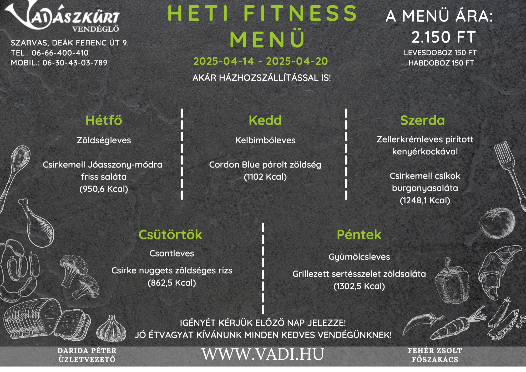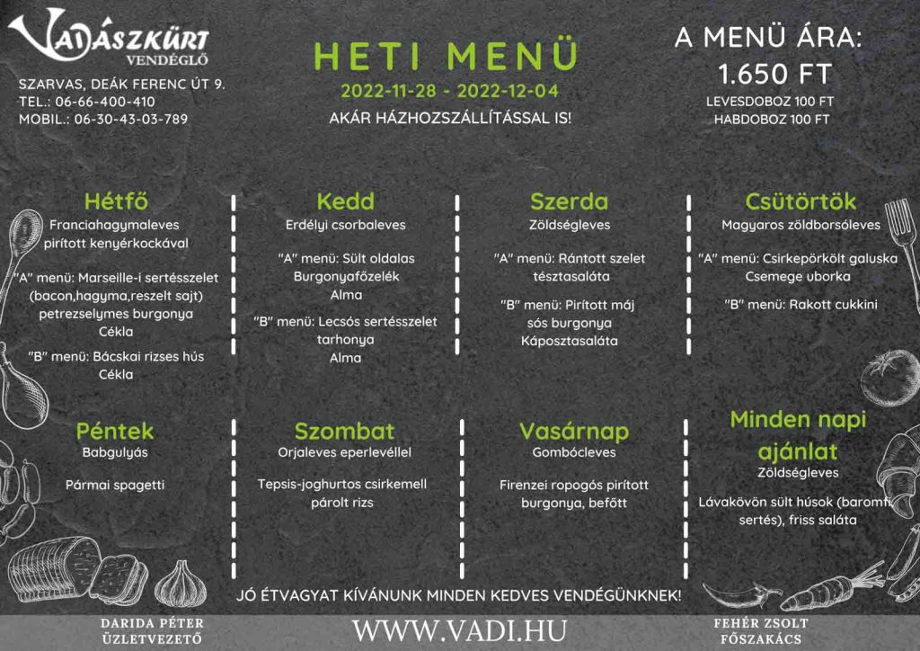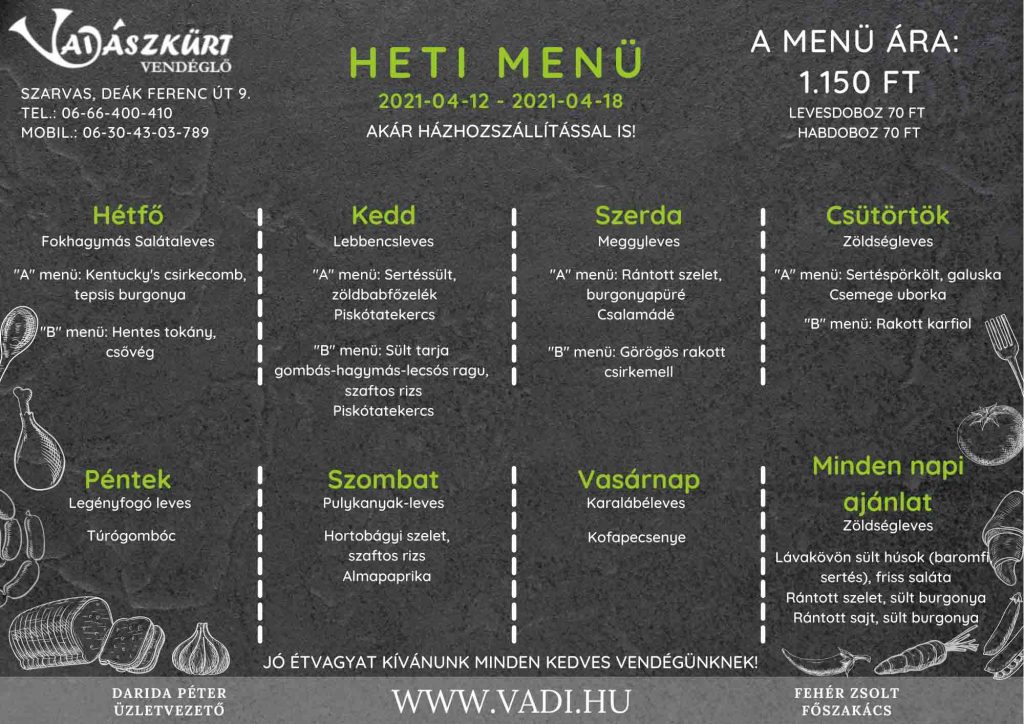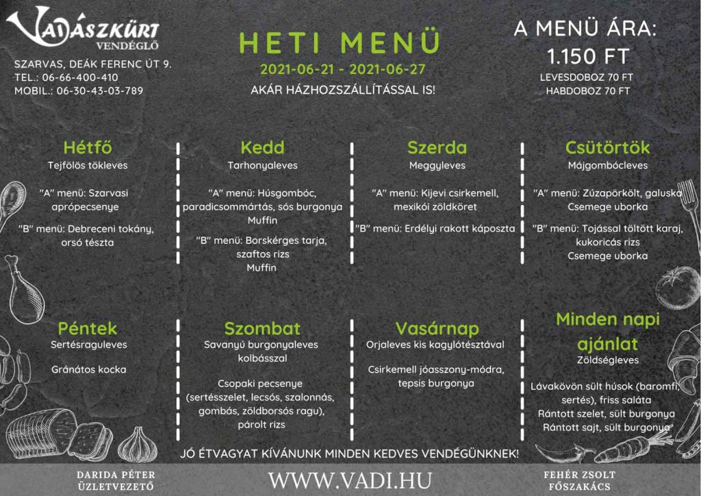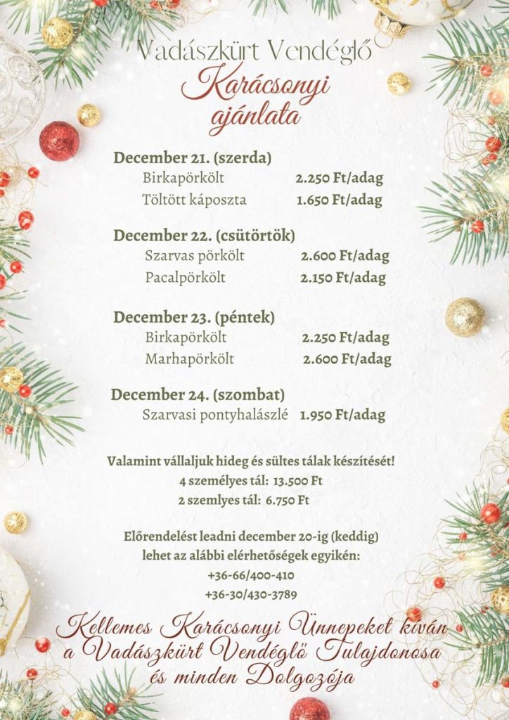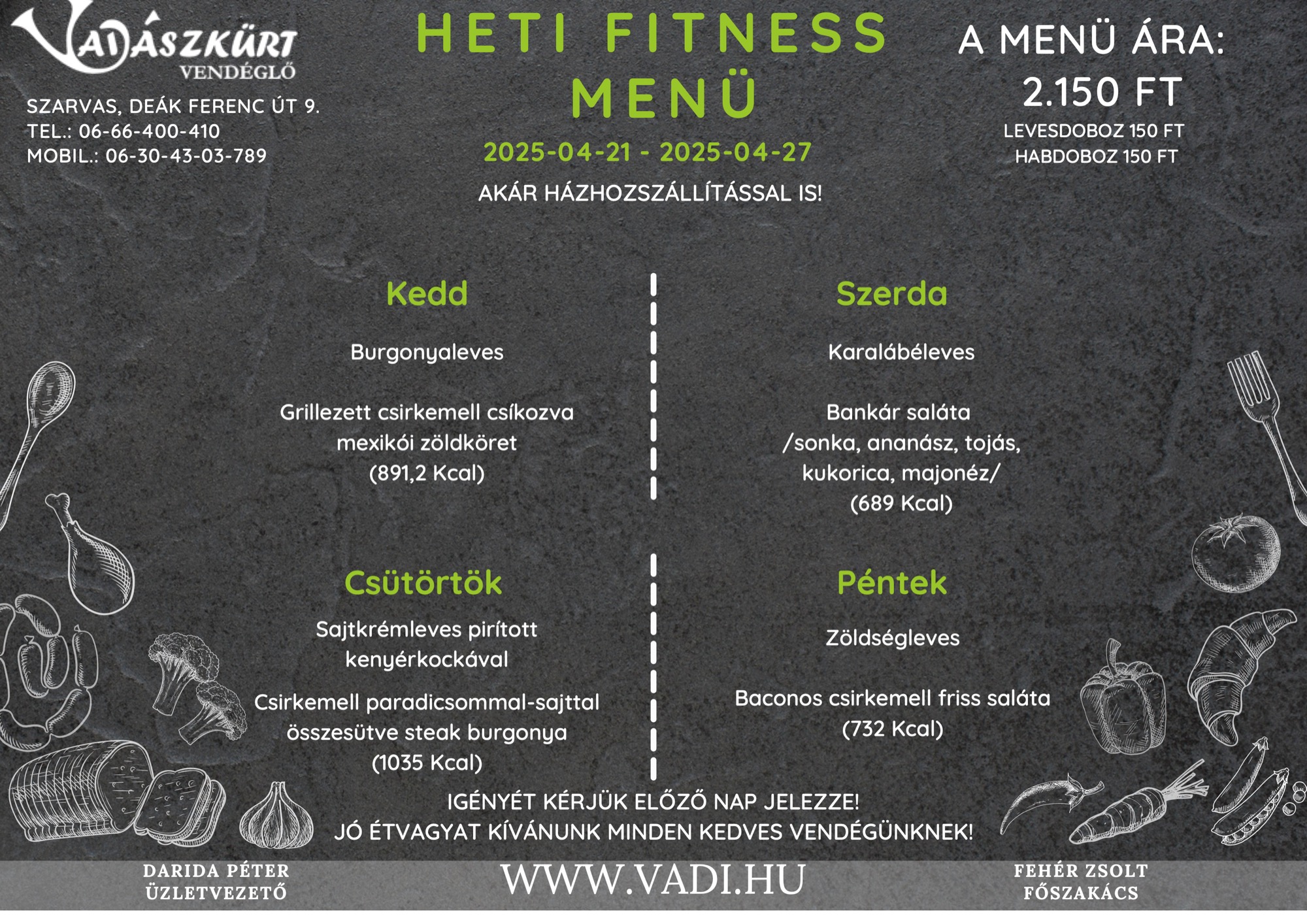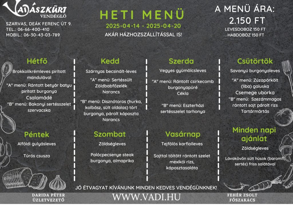 in Menü Vadászkürt Vendéglő menüje by Babák Z 2008-04-19, 21:24 61k Views 33megosztás Facebook Vadászkürt Vendéglő Szarvas, Deák Ferenc u.9.Tel:.06/66-400-410 Szeretettel várjuk kedves Vendégeinket! Darida Péter Fehér Zsoltüzletvezető főszakács menü33megosztás Facebook See more Previous article Szentandrás kikapott sajátmagától Next article Korona Gyorsétterem menüje Next post