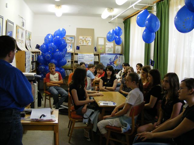 Előtte előadás segítette a vetélkedő sikeres lebonyolítását: Roszik Zoltán történész, a Tessedik Sámuel Múzeum igazgatója ismertette röviden az EU történetét, főbb jelképeit, a csatlakozási folyamatot.