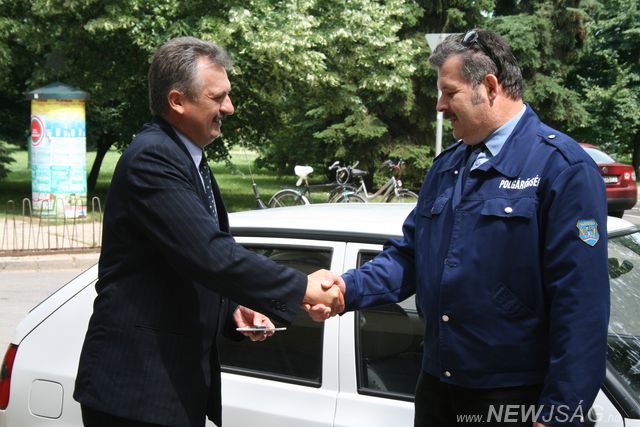 „Új” autót kapott a szarvasi Polgárőrség. A megyei rendőrkapitány rövid ünnepség keretében adta át használatra az immár kibővült megyei rendőrség egyik autóját. Ahogy azt Tusjak Tamás elmondta, nagyon időszerű és szükséges volt már ez a dolog, mert a jelenleg használt Opeljükben már 330 ezer kilométer van, szervizeltetése egy vagyon. A most megkapott autó ennek kb. egyharmadát futotta, inkább parkolókból lehet ismerős többünknek, ahol emlékeim szerint ezt, vagy a testvérét sebességmérésre használták. Kedves szarvasi autósok! Ezentúl ne lépjenek reflexszerűen a fékre, ha meglátják Szarvason a GIK-es rendszámot, mától a jó ügyet szolgálja!