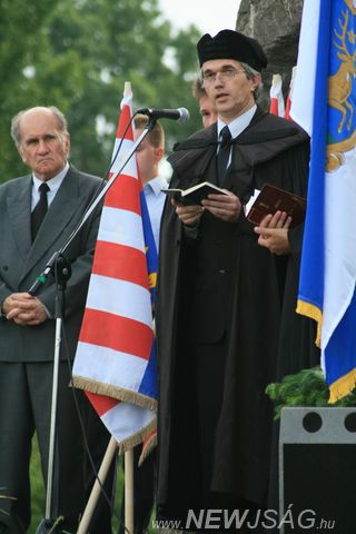 A világ legszomorúbb kesergője, a Himnusz és a Székely Himnusz után Polgármesterünk mondott rövid beszédet, majd Dúló Erika és a Benka Gyula Általános Iskola Színjátszó Csoportja nagyon eredetire sikerült előadással lepte meg a résztvevőket. A vezérszónokok már nem mérték olyan szűken a szót, Kiss Dénes, a Trianoni Társaság Elnöke, ill. Székelyhidy Bertalan történész hosszú monológokban emlékeztek. Az egyikük által citált könyv szerzője meglepő kapcsolatot talált az etruszkokkal, amivel már szinte karnyújtásnyira kerültünk a magyarviaszhoz. Valószínűleg a környezetéből kiragadott és nem eléggé elmagyarázott mondatok miatt tűnt úgy, hogy a szerző több dimenziót, teret és időt figyelmen kívül hagyva akart kedvezni a magyaros érzületű hallgatóságnak. A rendezvényt Samu Tamás Gergő, a Jobbik szarvasi elnöke, majd az egyházak képviselői, Lázár Zsolt és Pentaller Attila zárták. Valószínűleg a Magyar Gárda tehető felelőssé azért, hogy a szintén hazafias érzelmű cigányság távol maradt az eseménytől. Vagy kinek az országa ez?