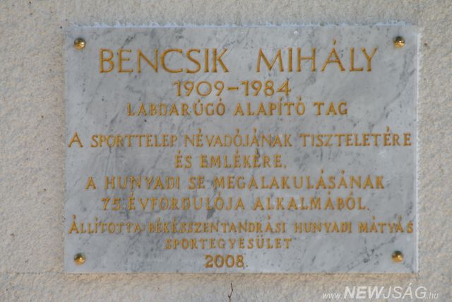 75 éve, 1933-ban Bencsik Mihály, a fociszerető cipész ötlete alapján alakult meg a Békésszentandrási Hunyadi Mátyás Sportegyesület. Azóta a szentandrási sport volt fent és lent, de természetesen szívesebben emlékeznek azokra a sikerekben gazdagabb időkre, amikor csatár ötösükről még a megyei sajtó is rendszeresen és elismerően cikkezett. A hálás falubeliek nem felejtettek, ettől a pillanattól kezdve Bencsik Mihály Sporttelep a hivatalos neve a Körös parti létesítménynek. Az eseményt Buzánszky Jenő, az Aranycsapat élő legendája jelenlétével tette még emlékezetesebbé.