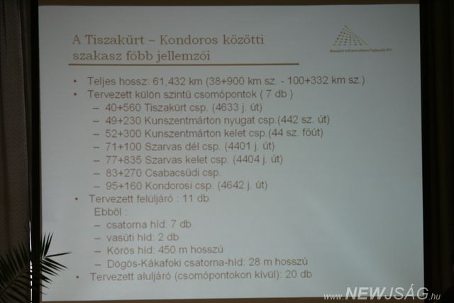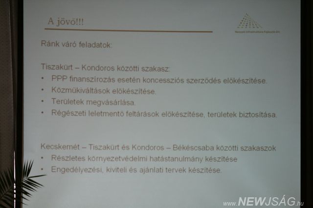 A kecskeméti csatlakozási pont még mindig a levegőben lóg, de a csabai rész sem haladt egy centit se előre. Az utóbbinál annyi a könnyebség, hogy ott csak három változat közül nem tudnak dönteni, de a Kecskemétet elkerülő szakasznál még azt sem tudják, hogy merről kerülje el a várost. Egy korábbi megbeszélésen Polgármesterünk és Domokos László azt próbálták elérni, hogy ne Szeged felől csatlakozzon az M5-ösbe, hanem észak-nyugaton, Pest felé, hiszen innen a főváros irányába szeretnénk eljutni. A kecskemétieknek továbbra sem érdekük ezt a térséget bekapcsolni az ország gazdasági vérkeringésébe, valószínűleg ezért is tökölnek vele ennyit, aminek meg is van az eredménye, a Mercedeszes projektet már lefölözték.