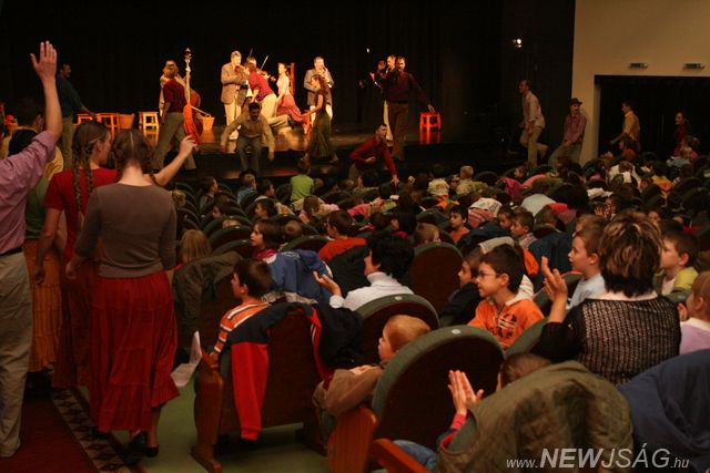 Ötszáz gyerektorokból zúgott a „ vissza, vissza…” a Honvéd Táncszínház és a Hegedős Együttes óriással, törpékkel, vándorokkal színesített gyerekműsorának végén. A nagymúltú formáció teljesen megtöltötte a Művelődési Központ színháztermét ovisokkal, kisiskolásokkal, akik a műsor közben tapsoltak és sikítoztak, a történések függvényében. Az egyik legnépszerűbb rész a páratlan zoknicsere volt, de az egész műsor bővelkedett humorban és mozgalmasságban. Ez utóbbiból a nézőtérre is jutott bőven.