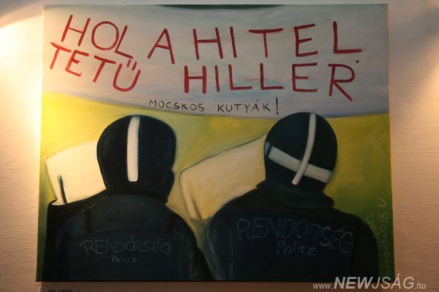 Anga Sterrenberg képeiből kiderült, hogy figyelemmel kíséri országunk legújabbkori történelmét. Festményeiből nyílt kiállításán párhuzamot vont az 56-os forradalom és a 2006-os események között. Nem ez az első szarvasi kiállítása, két éve már láthattuk képeit múzeumunkban. A családias hangulatú, de nagyon eredeti megnyitó alatt a művésznő egyetlen szót sem szólt, beszéltek helyette a képei, illetve Dr. Demeter László és Szuhaj György, akik saját gondolataikat mondták el a témával és a művésznő festészetével kapcsolatban. A festmények nézegetéséhez Gyurcsány Ferenc őszödi beszéde csinálta a megfelelő hangulatot.