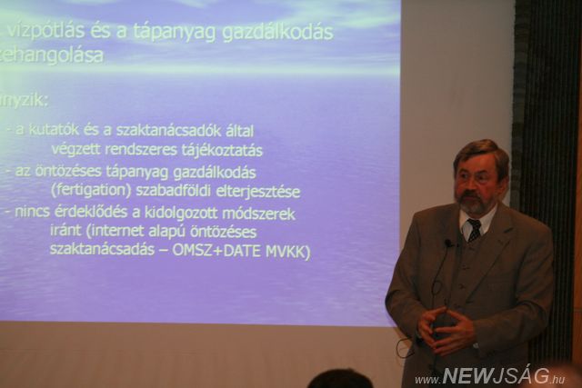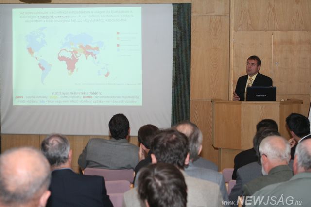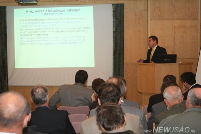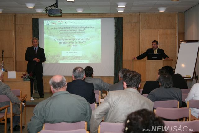 A vízigény még ennek is a töredéke, a probléma inkább az eloszlásával van. Van, aki úgy gondolja, hogy a víz lesz a következő világválság elsőszámú kiváltója (csak ezen legyünk már túl). Jelen konferencián mégsem globális kérdésekről esett szó, hanem egy sokkal gyakorlatibb dolog, mégpedig a mezőgazdasági termelők vízhezjutása körül csaptak össze a vélemények. A teljes érintett szakma képviselői eljöttek a rendezvényre, a minisztériumi szakállamtitkártól, a vízkezelők képviselőin és az egyetemek vizes tanszékeinek tanárain keresztül a vízhasználó mezőgazdasági és halas gazdaságok tulajdonosai és gazdálkodói is képviseltették magukat, így várhatóan a valóságban is közeledhetnek az érdekek, nem csak egy üzengetéses állóháború újabb epizódja lesz ez a tanácskozás.
