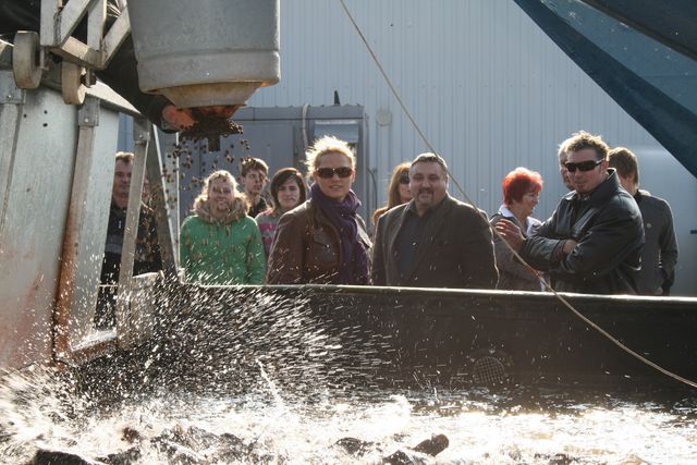 A program hátralevő részében a sportolók és kísérőik megtekintették a Szarvas-Fish Kft. telephelyét, ahol a zárt rendszerű tartás mellett nevelt halak kiváló viccpartnerek voltak, mivel etetéskor úgy néz ki egy ilyen medence, mintha forrna a víz, és a kád körül állókat pillanatok alatt lefröcskölik. Így a medencéhez későbben érkező, mit sem sejtő Kovács Katit, majd Janics Natasát állították a társak a medence mellé, hogy nekik se maradjon el a zuhany.