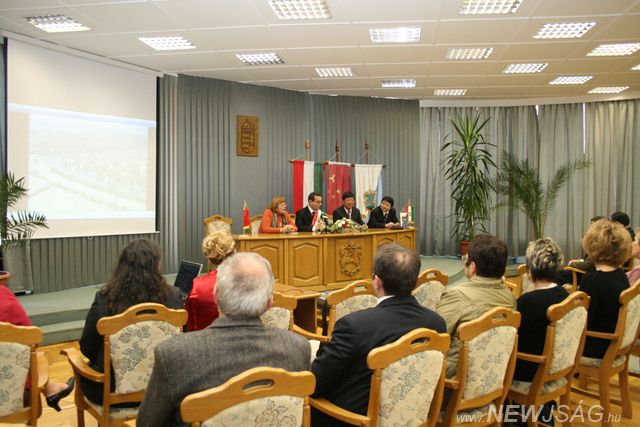 Baráti látogatásra érkeztek Szarvasra kínai testvérvárosunkból, Wuxiból. Az öt kínai tisztségviselőt Babák Mihály, illetve a nemrég Kínában járt szarvasiak csoportja fogadta. Érdekes volt látni, hogy mikor megérkeztek, elővették névjegyeiket, és hajlongva adták át a fogadóknak, valamint azt, hogy a tapsot, tapssal köszönték meg. Sajnos a kínai himnusz elénekléséről lemondtak a szervezők, mindenestre érdekes világcsúcs kísérletnek lehettünk volna tanúi. Polgármesterünk röviden bemutatta városunkat, kiemelte, hogy mennyire fontosnak tartja az újfajta barátságokat(?), végül bemutatta a megjelenteket.
