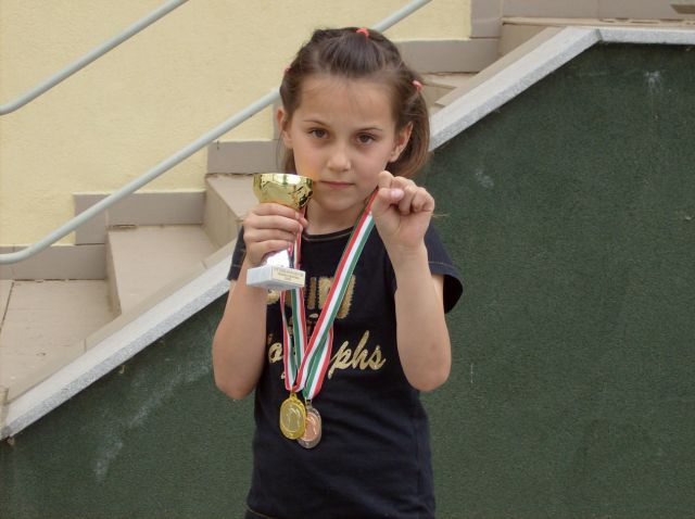 Dorina számára mindenképpen korona a magyar bajnoki cím kivívása, hiszen ez volt a tizedik (!) versenye és a komoly felkészülési időszakot követően magabiztosan állt pástra. A döntőben egy magasabb, nyurgább tiszafüredi kislánnyal kellett küzdenie két menetben: végig rendkívül kiegyenlített volt a küzdelem – Dorina emberére talált – volt adok-kapok bőven, ennek megfelelően a bírák sem tudták eldönteni, hogy ki a győztes. A vezető bíró mindkettejük karját egyszerre emelte a magasba.