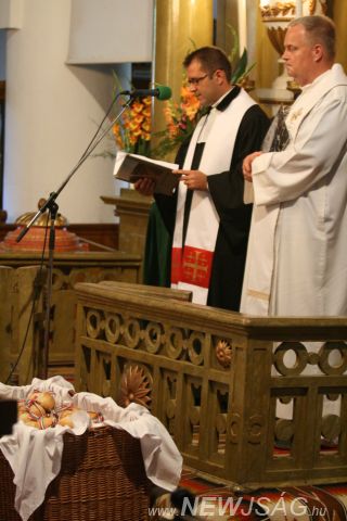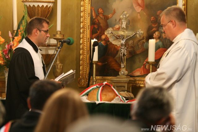 Az augusztus 20-i rendezvénysorozat az evangélikus Ótemplom előtt a Szarvasi Fúvószenekar térzenéjével folytatódott, majd négy órakor mindenki bevonult a templomba, hogy megtekintsék az ünnepi műsort. Laczó András – Bartók – Pásztory díjas, a Magyar Állami Operaház Aranygyűrűs énekművésze énekelt és fuvolán játszott, akit Sztankovits Béla a Magyar Állami Operaház gitárművésze kísért. Polgármesterünk ünnepi beszéde után Seidl Ambrus katolikus plébános és Lázár Zsolt evangélikus lelkész tartott Ökumenikus Istentisztelet, majd közösen áldották meg az Új Kenyeret. A megjelentek a templomból távozóban megáldott kiscipókat kaptak emlékül.