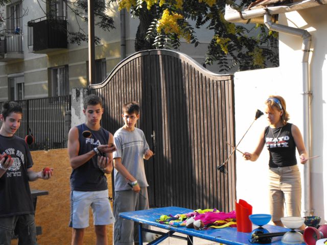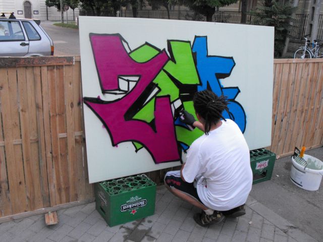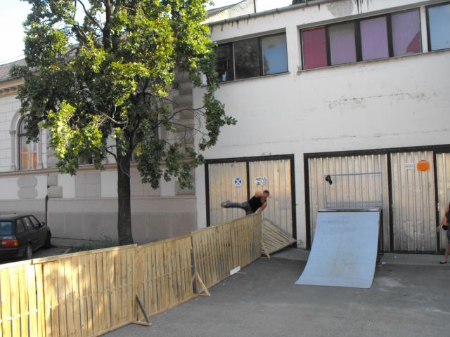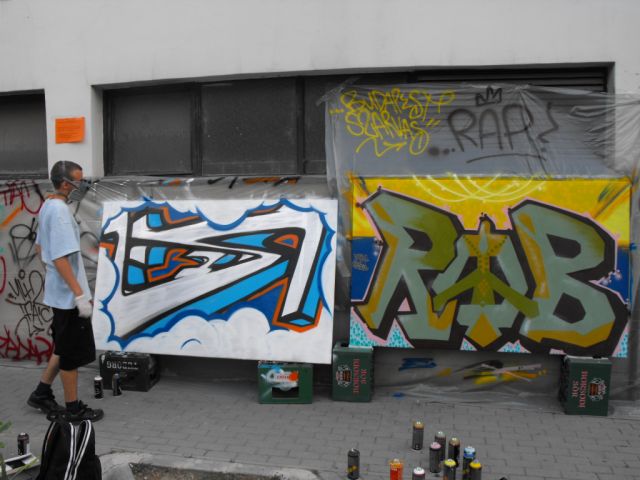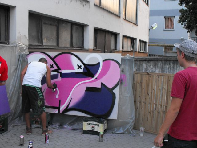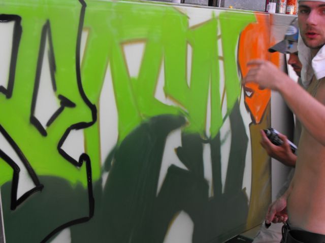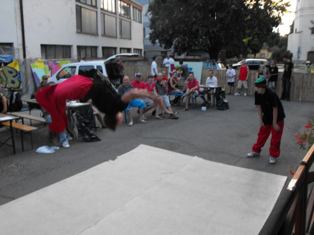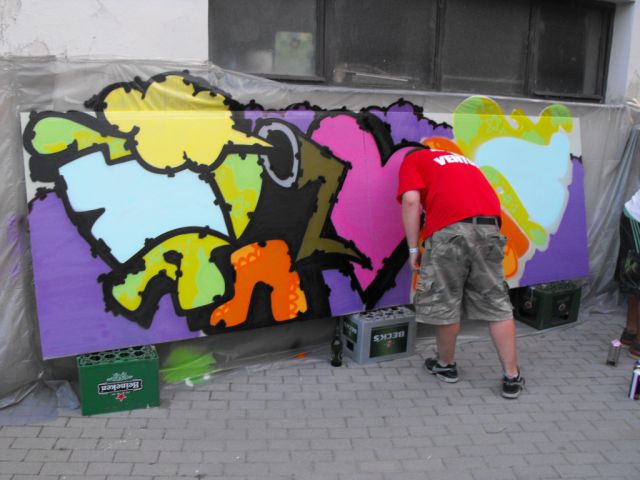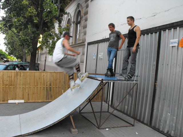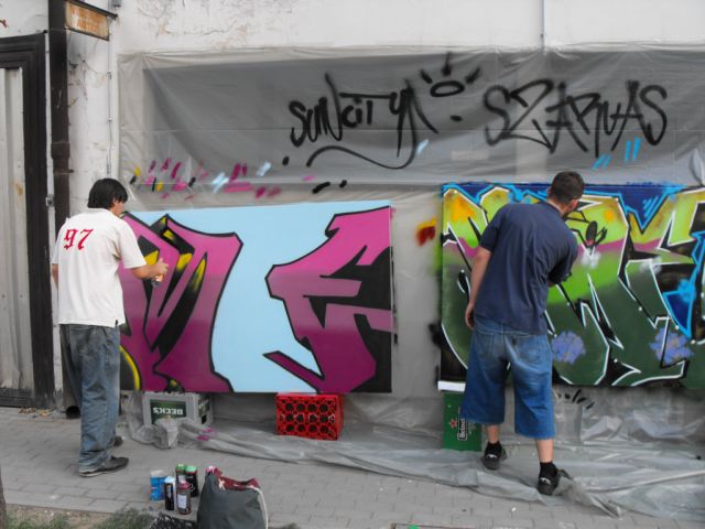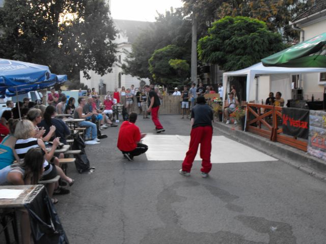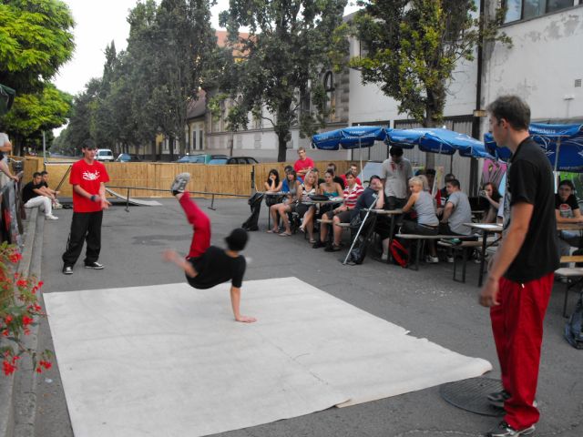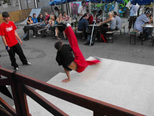 Ezen a forró szombati napon már délben megkezdődött a szervezkedés, útlezárás, a greffiti felületnek szolgálló gipszkartonlapok elhelyezése, fóliázás a falak védelmére. Amint a görkoris elemeket is sikerült összeszerelni, megérkeztek a Vestax promociótól is és kis idő múlva már szólt is a könnyed funky a jam-melő fiatalságnak. Mire minden összeállt, meg is érkeztek az első érdeklődők és egy-egy korsó hideg sör mellett az árnyékban elkezdték böngészgetni a délutáni programokat. Ezután a meghirdetett bemutatókkal párhuzamosan, folyamatosan érkeztek a kíváncsi szemek és fülek. Kis idő alatt meg is telt a kis udvarrá avanzsált terület és mindenki megtalálta a számára kedves szubkultúrát. Voltak akik a görkorisokkal pörögtek és hájpolták a jobbnál jobb trükköket, amiket a negyedíven pirítottak a srácok. Közben a greffitisek is kiválasztották a számukra legmegfelelőbb felületet és belelendültek.