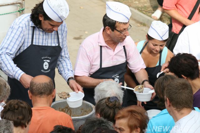 A kavarásba beszálltak politikusaink is – elvégre, ha valaki, ők értenek ehhez – Babák Mihály és Domokos László mellett beszállt Deutsch Tamás is, aki segített Polgármesterünknek a javak igazságos elosztásában is, és kézből etették választóikat. Humorról Beleznay Endre próbált gondoskodni, Berecz Andrásnak ez sikerült is. Saját stílusában előadott meséit a Lengyel-palotában hallgathatták rajongói. A nap fénypontja a pálinkaminősítés eredményhirdetése volt, amiről később külön írásban beszámolunk. Az est hátralevő részében a zenészek vették birtokba mindhárom helyszínt. A Lengyel-palotában Csík Ödön és Zenekara, a fesztiválsátorban az egykori Bojtorján és Fonográf tagokból álló No Comment zenélt. A legnagyobb tömeget, mint kiderült, az egész városban csak számomra teljesen ismeretlen ex-TNT, Dobrády Ákos vonzotta a Kossuth utcai színpadhoz. A napot a Chevrolet Band utcabálja zárta.