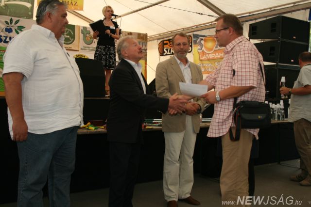 Fődíj: Forschner Rudolf által felajánlott vándordíj: Demcsák János sztelli pálinka