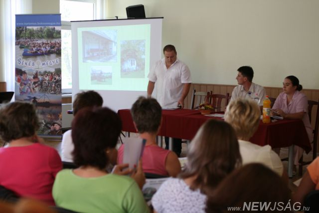 Hricz Elvira, az Egyesület titkára pedig beszélt az idei év 4 nyertes pályázatáról, melynek keretében tanulmányutat szerveznek október közepén Jász – Nagykun Szolnok megyébe az ottani falusi szálláshelyek működésének megismerése céljából. Egy másik pályázat keretében pedig végre elkészül a Békés megye falusi szállásadóit megjelentető honlap és kiadvány, amelyben helyet kapnak azok a szolgáltatók is, akik valamilyen módon kötődhetnek a falusi turizmushoz.